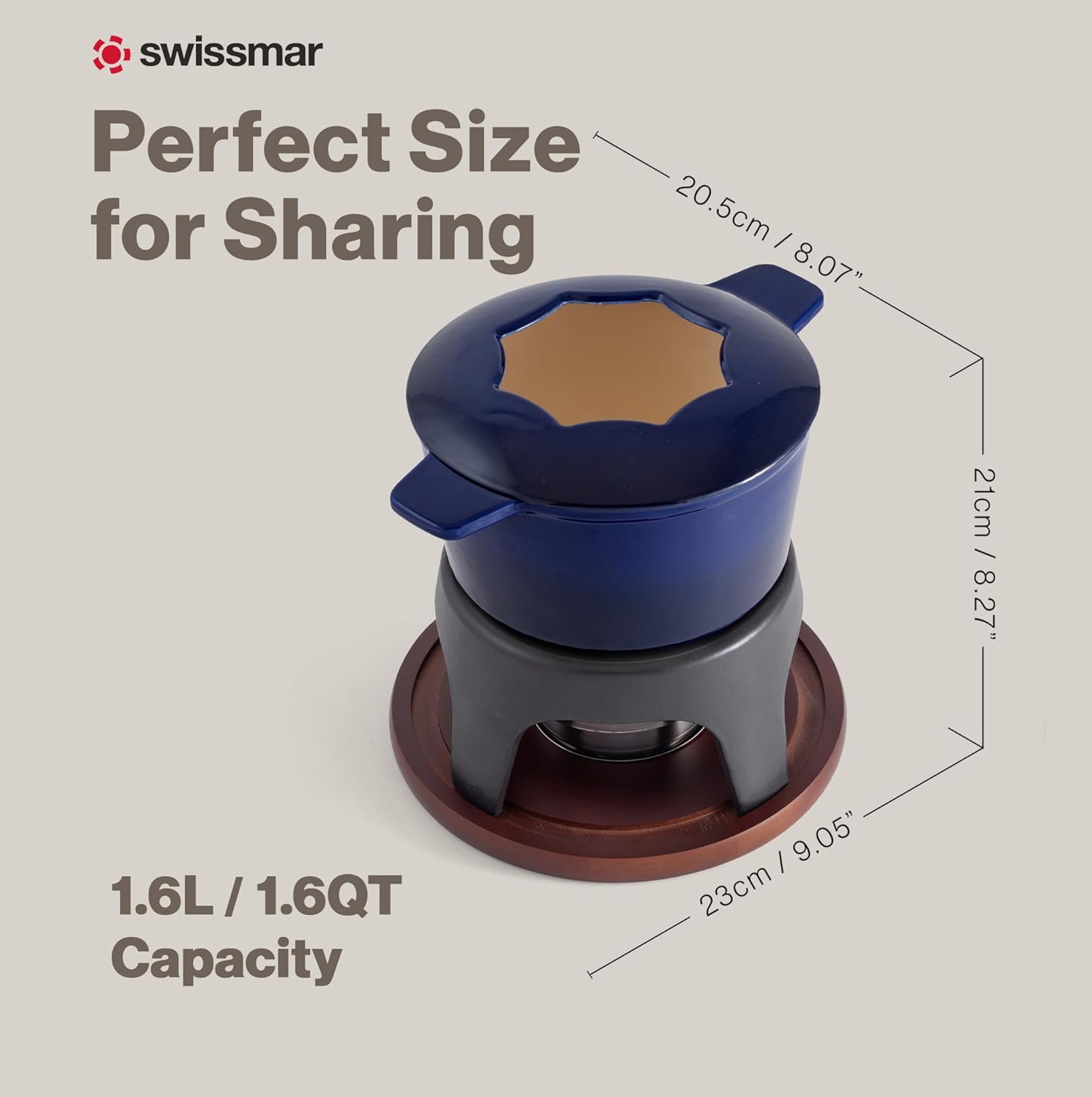 - Compatible and Easy to Clean: Can be used on all heat sources and is easy to clean, making it ideal for melting cheese, chocolate, and more. This versatile cast iron fondue set measures 8-1/4 inches ( 20.96 cm) high by 8 inches (20.32 cm) in diameter, with the pot measuring 6-3/4 inches (17.15 cm).