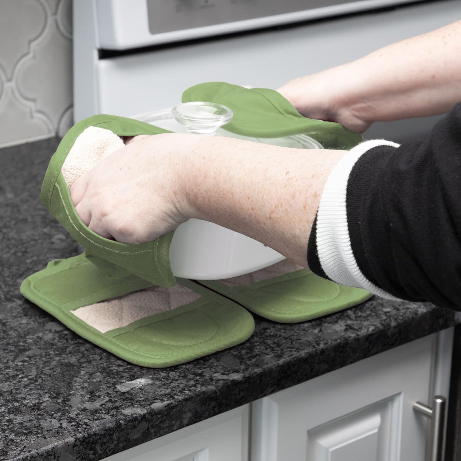 Ritz Premium Pot Holders & Heating Pads (4-Pack), 8.5" x 5.5", Heat Resistant, 100% Cotton Terry-Looped Pocket, for Kitchen and Barbeque, Cactus Green