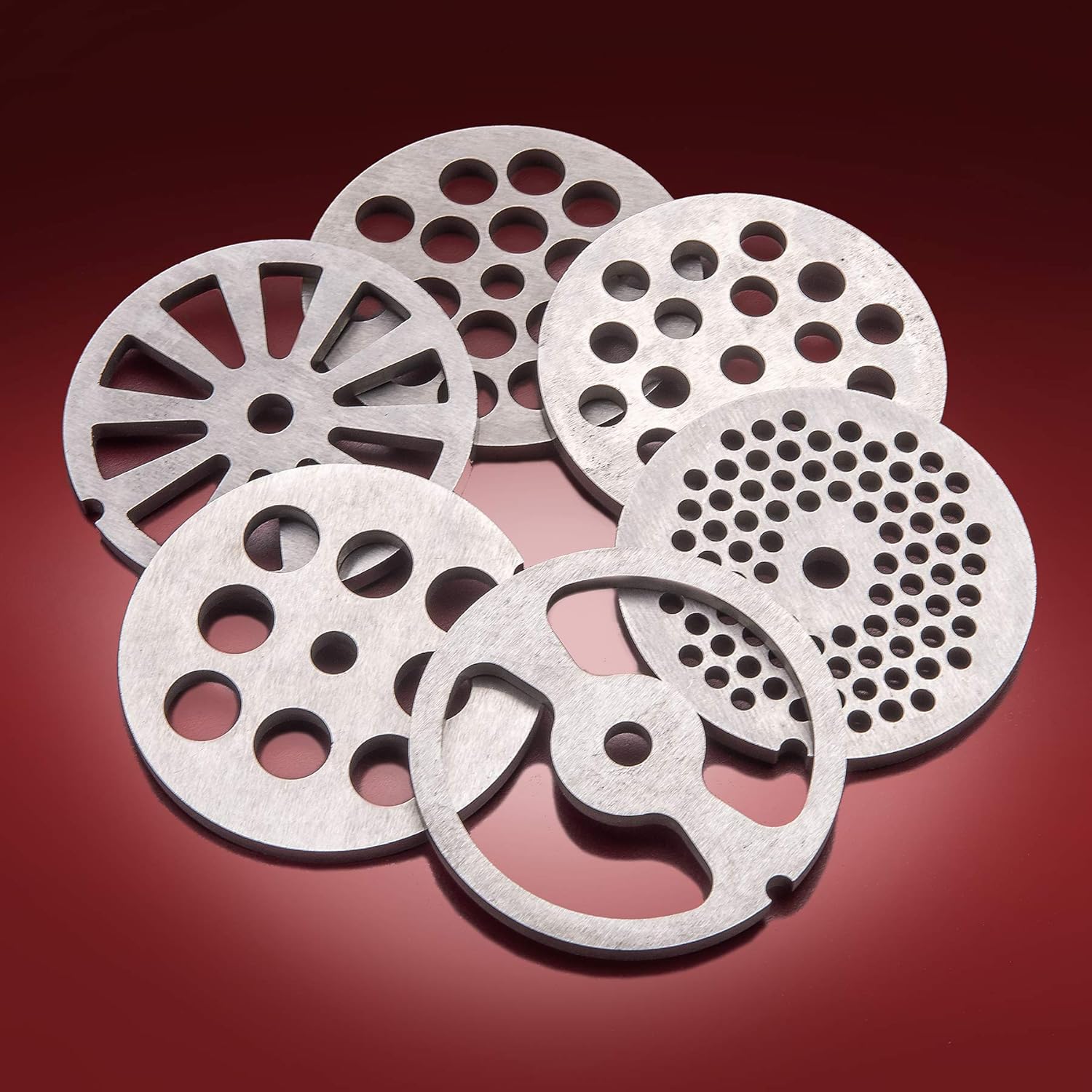 - This Magnum 1800W “Platinum Edition” Grinder also Includes: 1-Polished Aluminum Grinding Head and High Capacity Meat Tray, 3 - 304 Grade Stainless Steel Cutting Blades, 5 - Sizes of Grinding Plates, 1 - Sausage Stuffing Plate, 3 - Sizes of Sausage Stuffing Tubes (1/2", 5/8" & 3/4"), 1 - Kubbe/Kibbe Making Attachment & 1 - Easy to Use Palm Meat Pusher/Stuffer, a pair of Meat Claws & Burger-Slider Press.