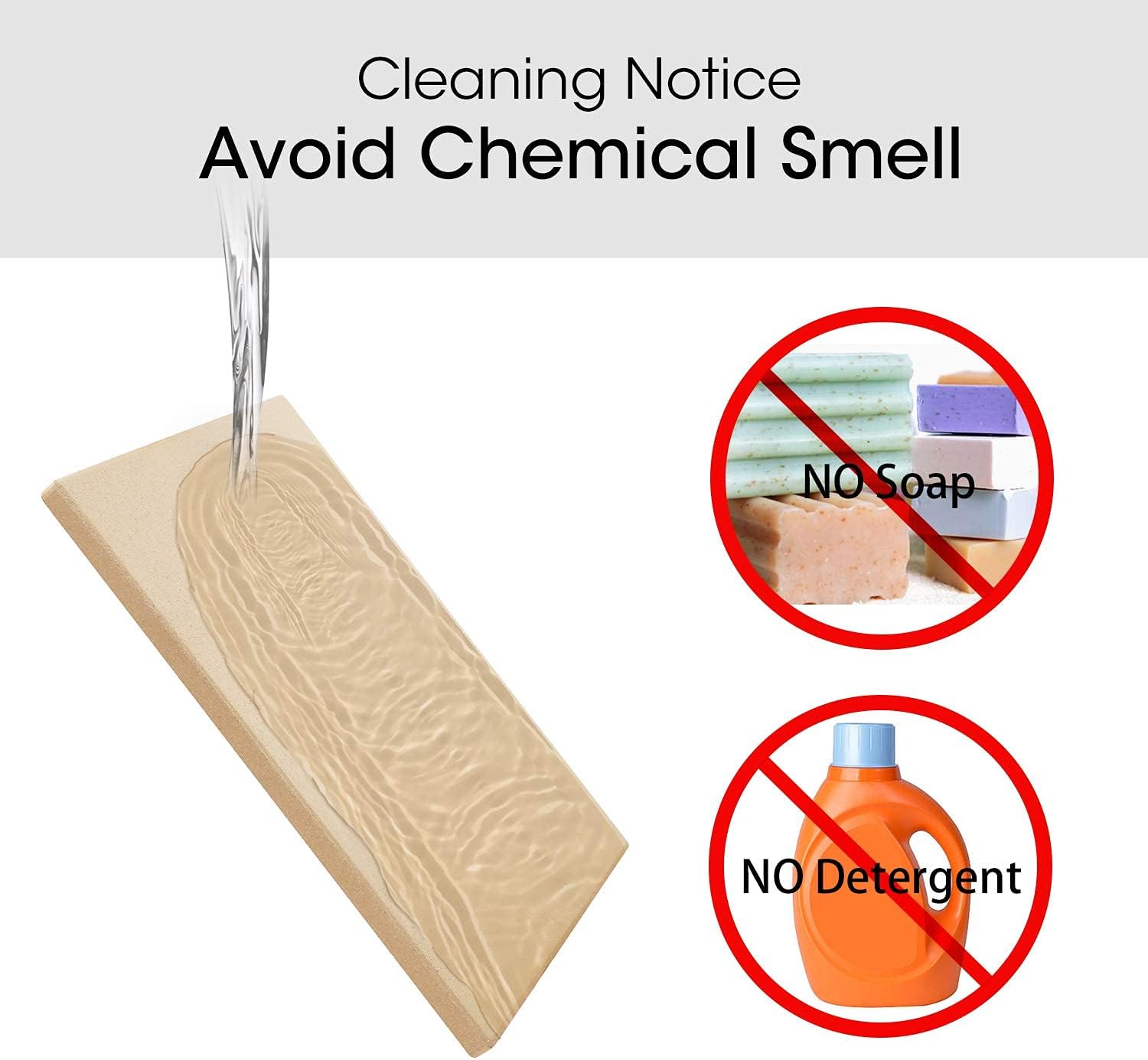 - [Easy to Clean] Use scraper to remove excess food, when the stone has cooled down, hand wash with warm water or scrubbing with a brush if accessories. [Warning] Never use soap or detergent to clean the stone! Never season cordierite stone with oil or grease!