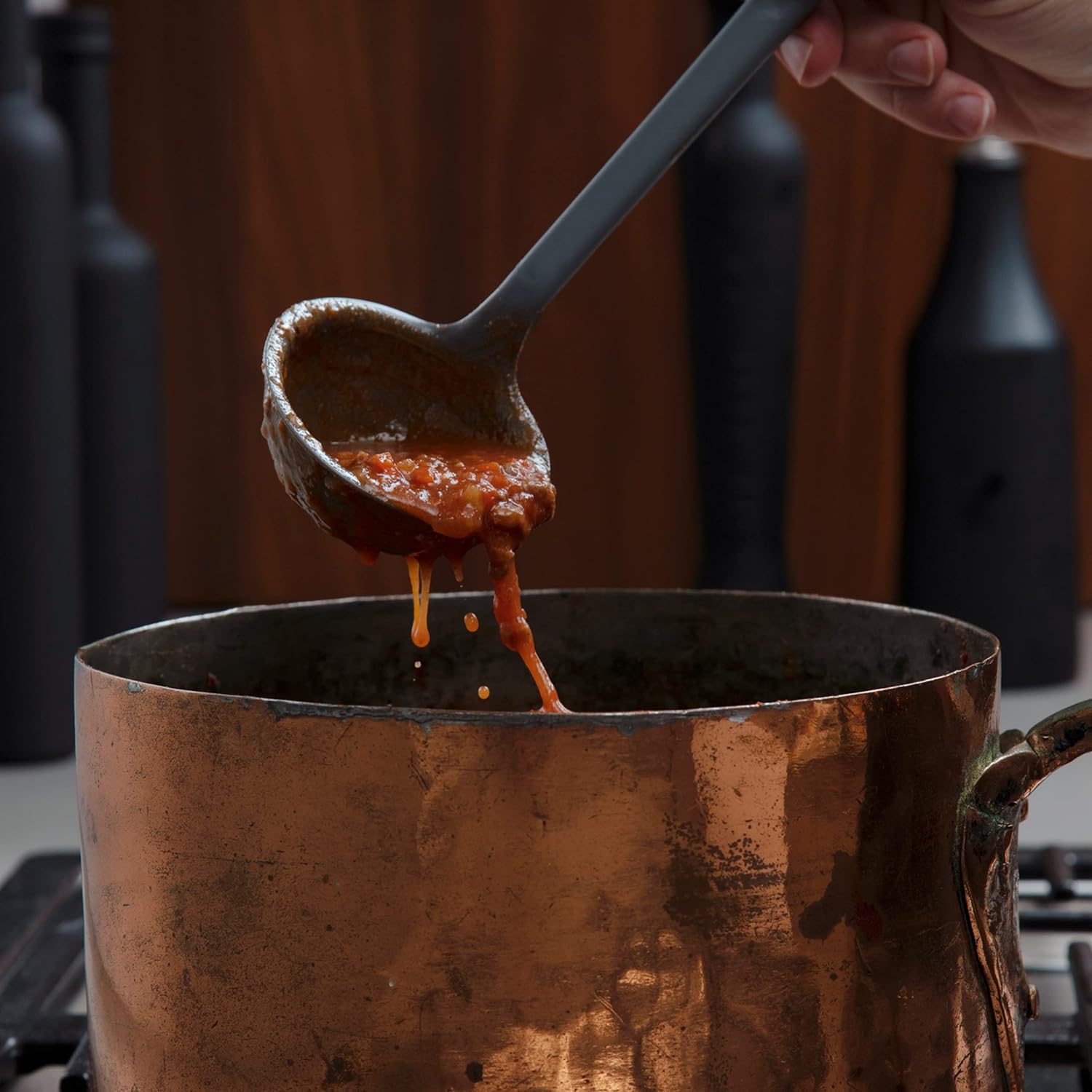- Precision Pouring Ladle: The precision-edged Ultimate Silicone Ladle ensures no spills with its flexible front, ideal for scooping into any pot or pan's corners. Excellent for soups, stews, and more, this ladle with pour spout enhances your kitchen experience