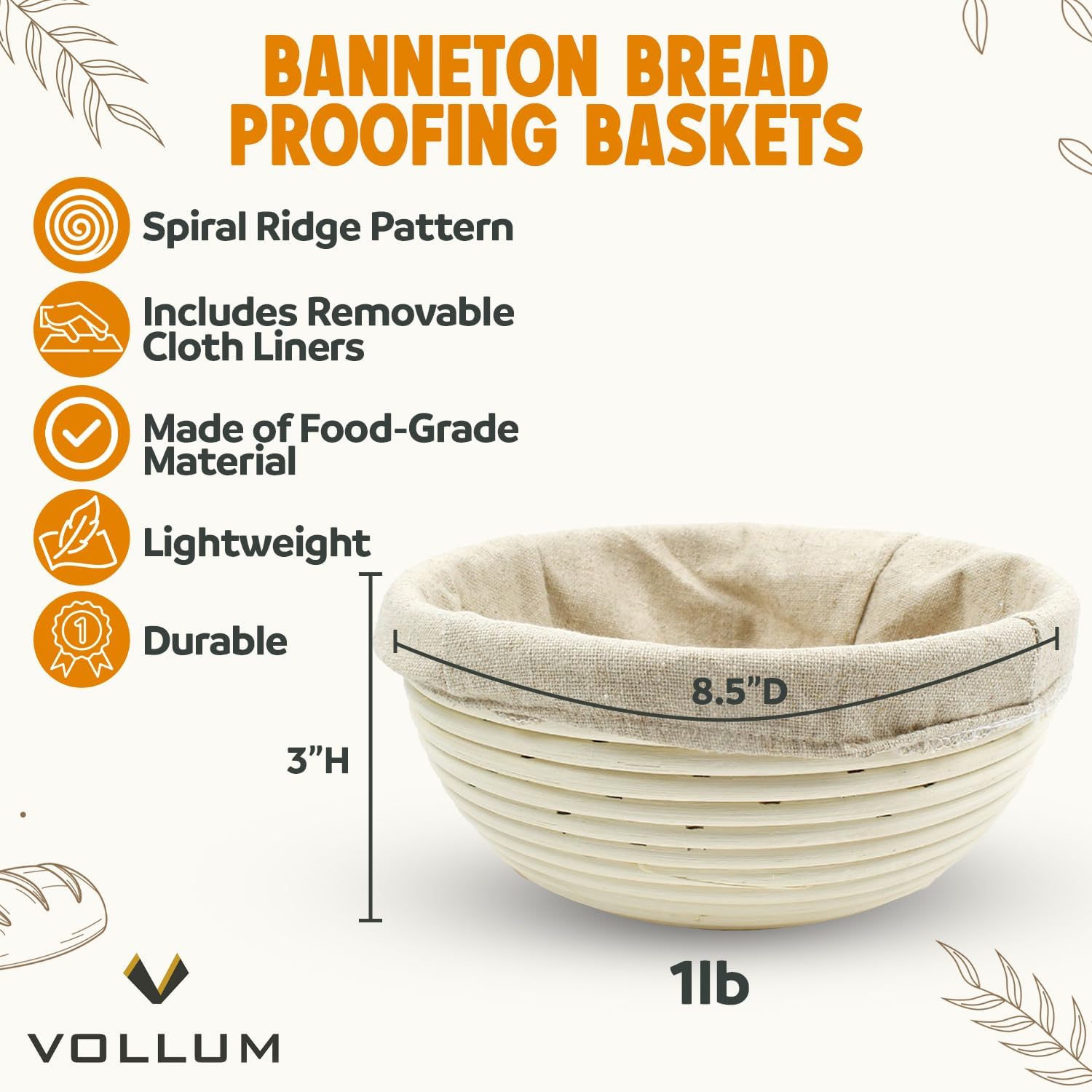 Banneton Bread Proofing Basket sourdough proofing basket for Beginners & Professional Bakers, Handwoven Rattan Cane Bread Maker with Linen for Artisan Breads, 8.5 x 3 In, 1-Pound Round Brotform