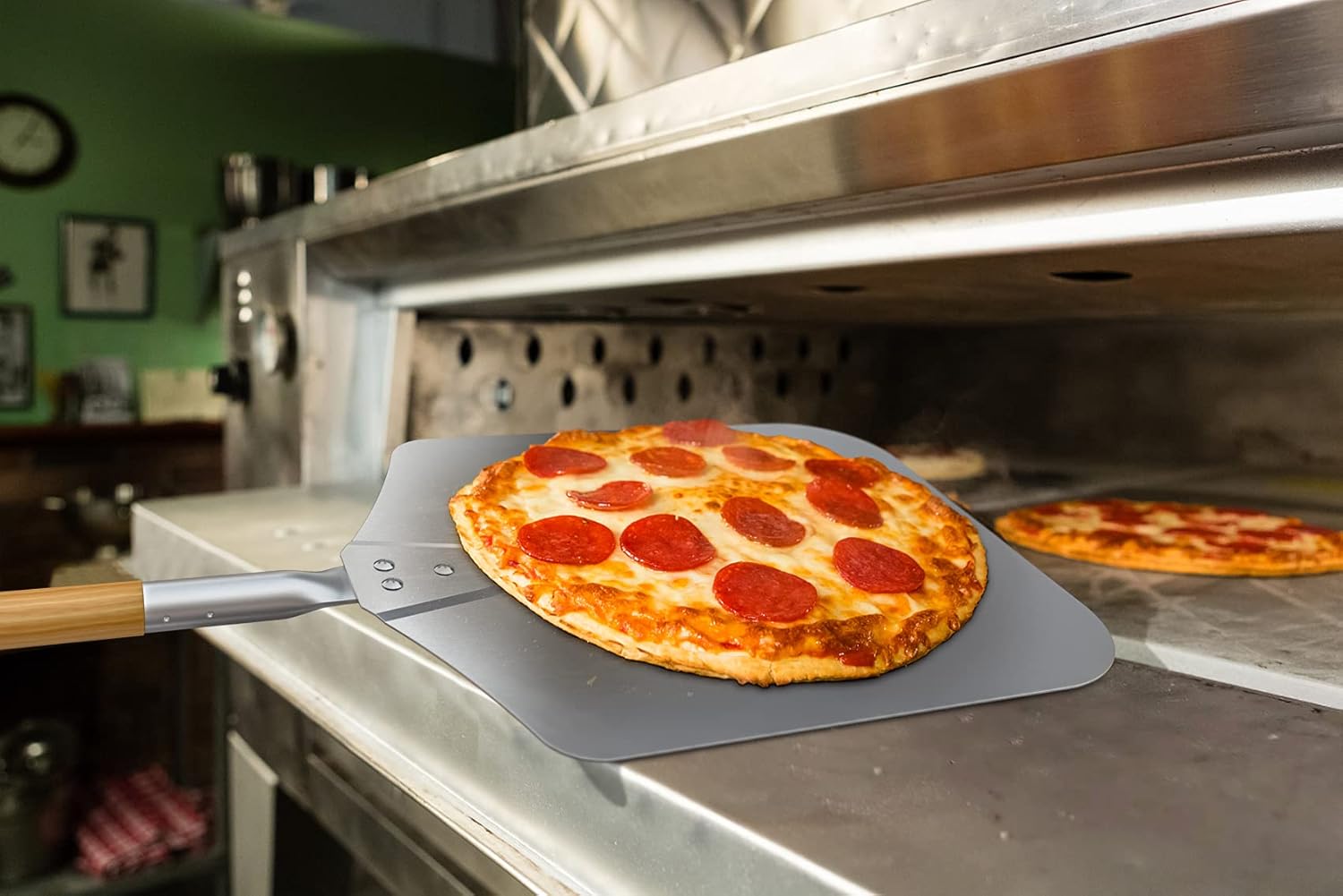 - Dimensions: 12-inch wide by 14-inch long for the pizza peel placing surface, with 18-inch wooden handle.