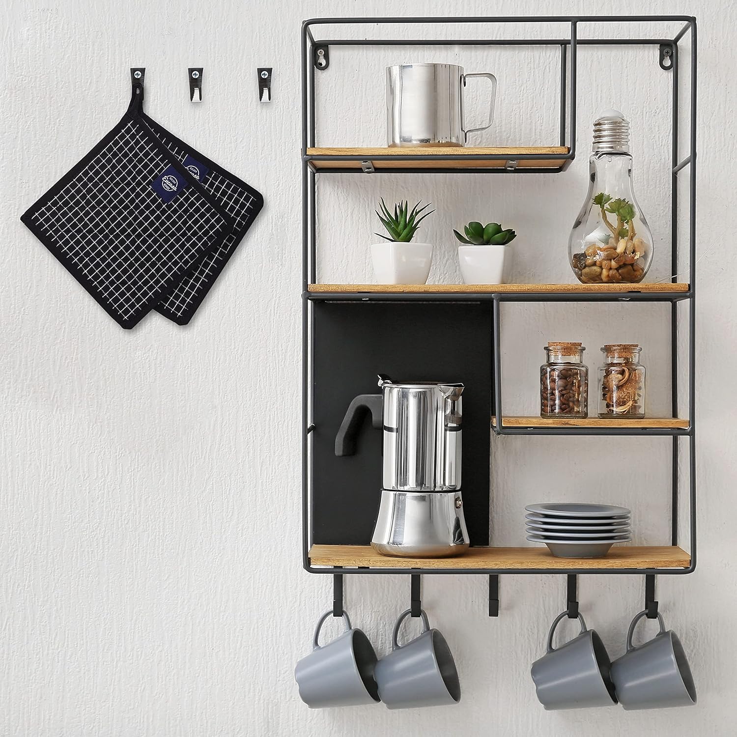 Encasa Homes 8 inches Oven Microwave Potholders (2 pc Set) for Kitchen Cooking & Baking - Heat Resistant, Thick & Safe, Protection of Hands from Hot Utensils - Butcher Checks Black