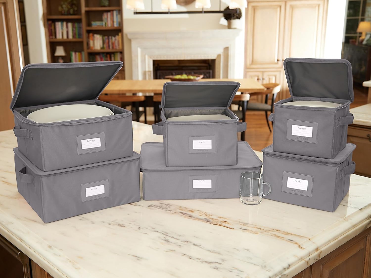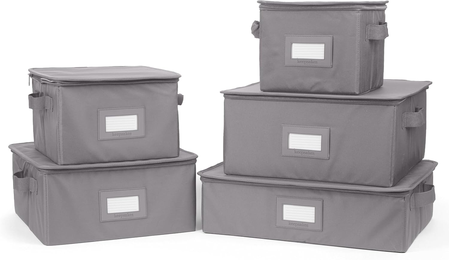 Covermates Keepsakes Dish Storage Box - Stackable, Reinforced Handles, China Storage, Graphite