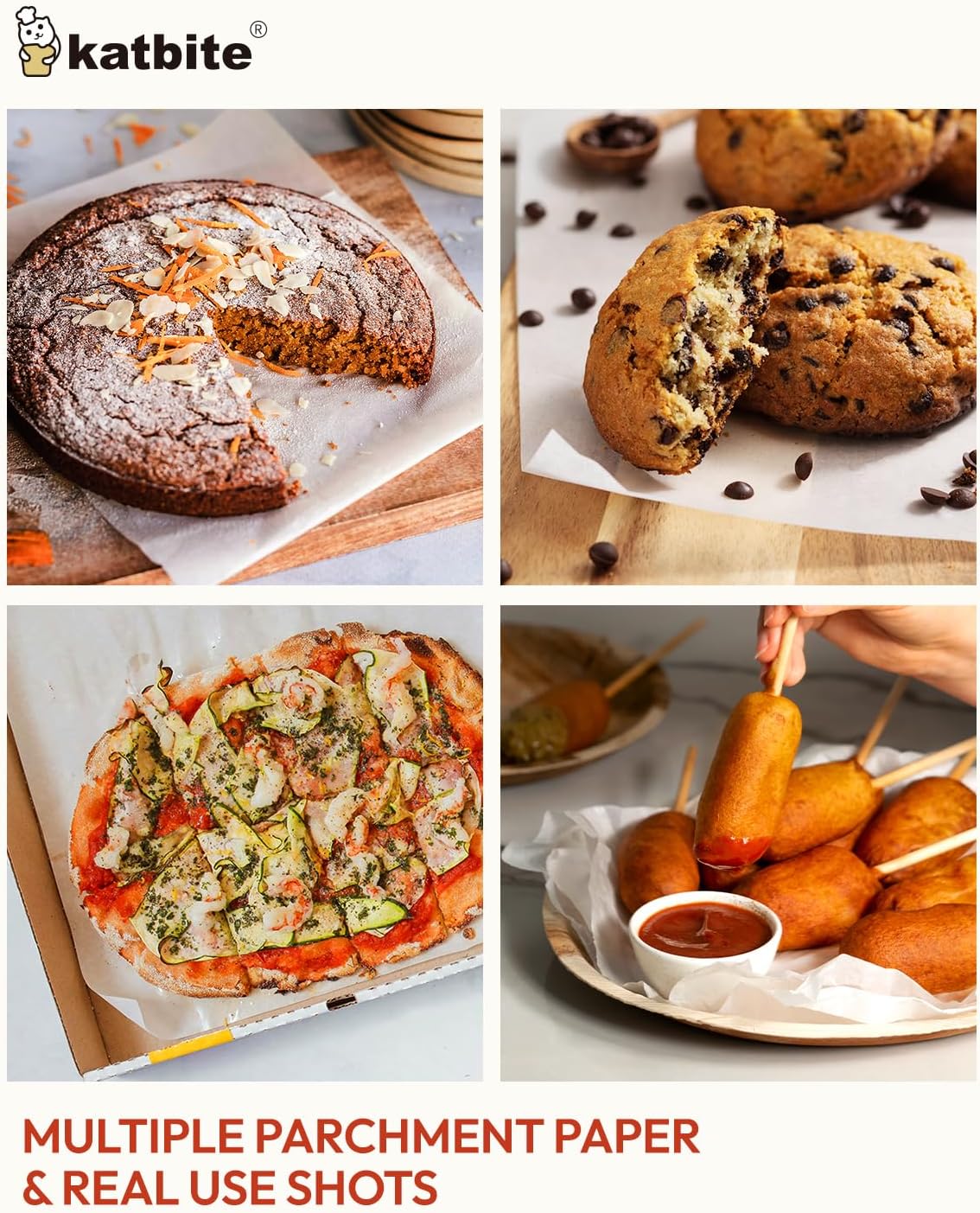 - NON-STICK & EASY TO CLEAN - Do you love baking but hate cleaning up? Katbite nonstick parchment paper for baking makes it possible and even works great! Food can be easily slide off from the baking tray and you just need to remove the paper and throw it away after baking.