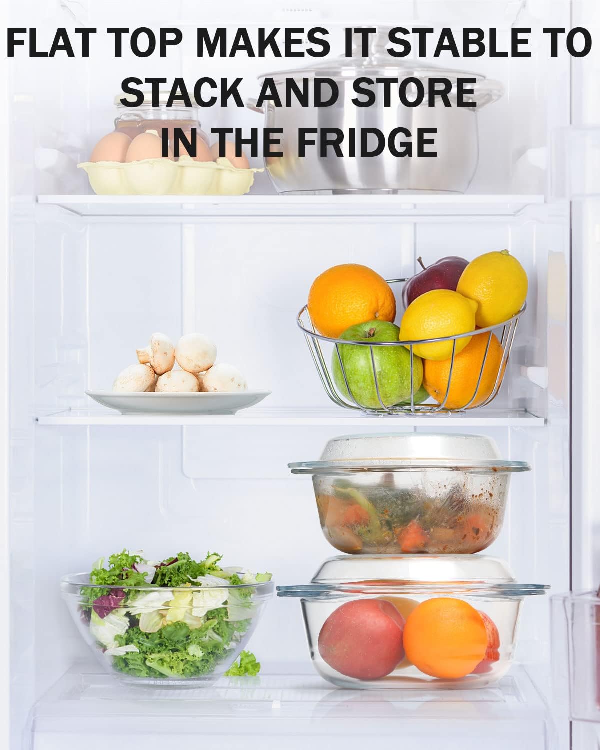- GREAT SPACE SAVOR: It's hard to find a casserole dish that is easy to stack! Flat top with no knob means you can stack several glass microwave bowls on top of each other in the fridge or cabinet for efficient, space saving storage.