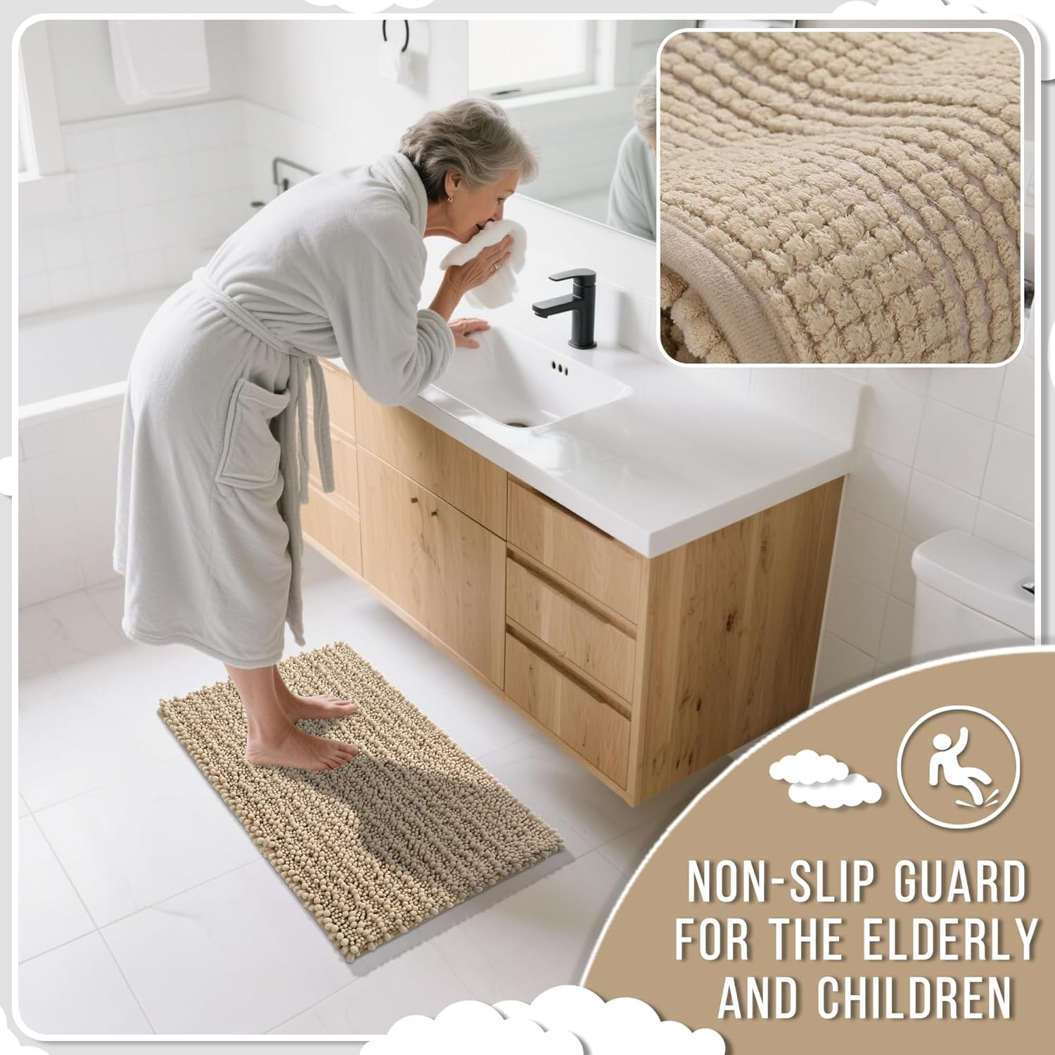 Yimobra Bathroom Rugs Non Slip Washable 24x17 Inch - Ultra Soft Absorbent Chenille Bath Mat, Quick Dry Shaggy Floor Carpet for Tub Shower, Pale Khaki Home Decor Accessories