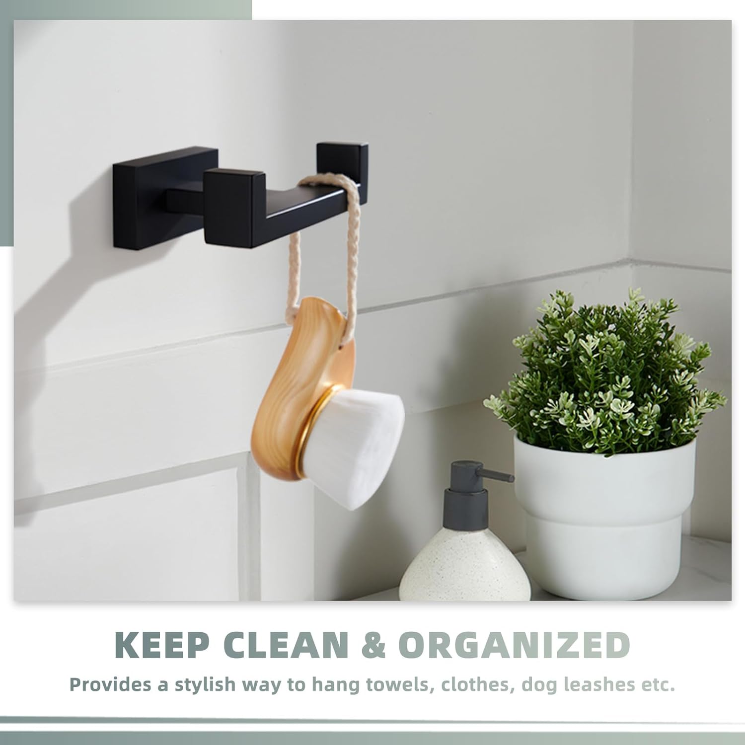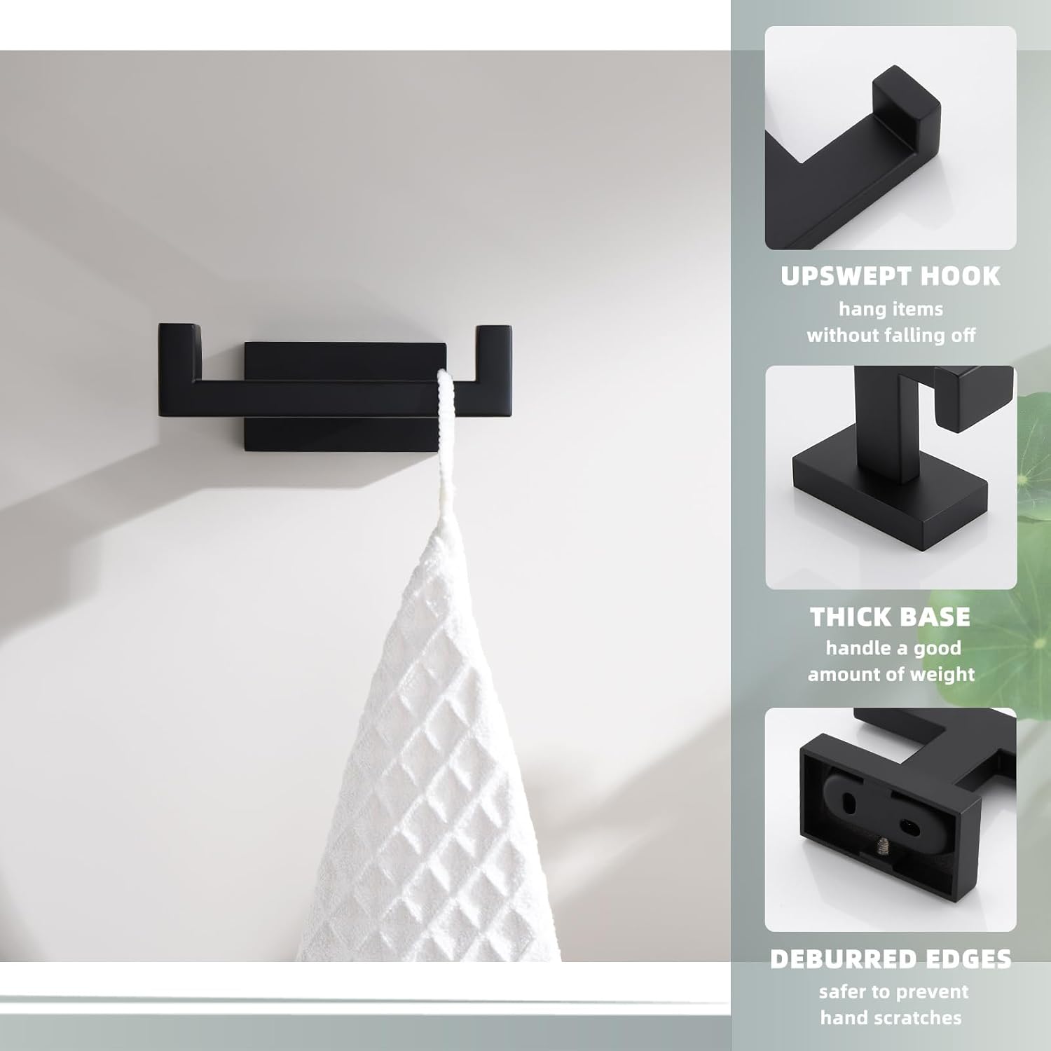 Suyar Matte Black Double Towel Hook, SUS 304 Stainless Steel Bathroom Coat Robe Hook, Hand Towel Holder for Wall