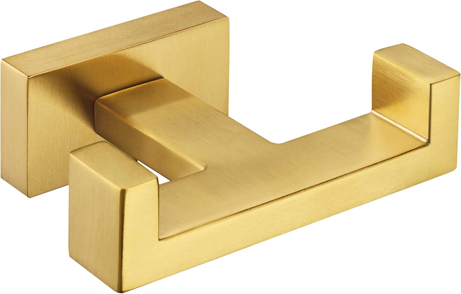 Suyar Double Towel Hook Brushed Gold, SUS304 Stainless Steel Square Coat Robe Holder, Bathroom Kitchen Towel Hanger, Wall Mounted