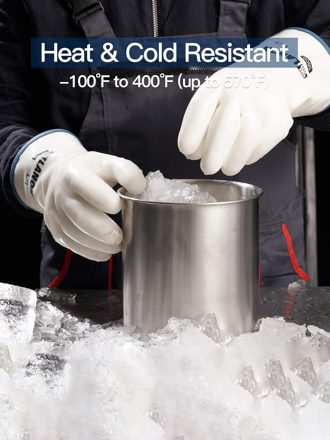 LANON Protection Wahoo Liquid Silicone Smoker Oven Gloves, Food-Contact Grade, Heat Resistant Gloves for Cooking, Grilling, Baking, White, M/8