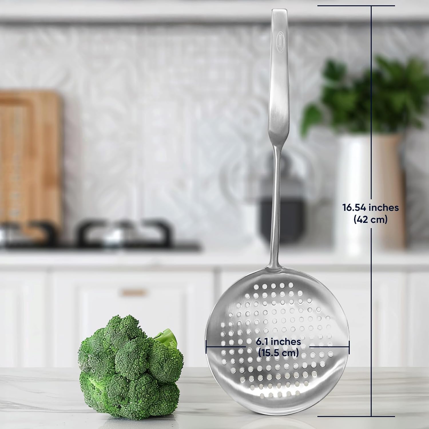 Newness Slotted Spoon, [Rustproof, Integral Forming, Durable] 304 Stainless Steel Widen Skimmer with Vacuum Ergonomic Handle, Comfortable Grip Design Strainer Ladle for Kitchen, 16.93 Inches