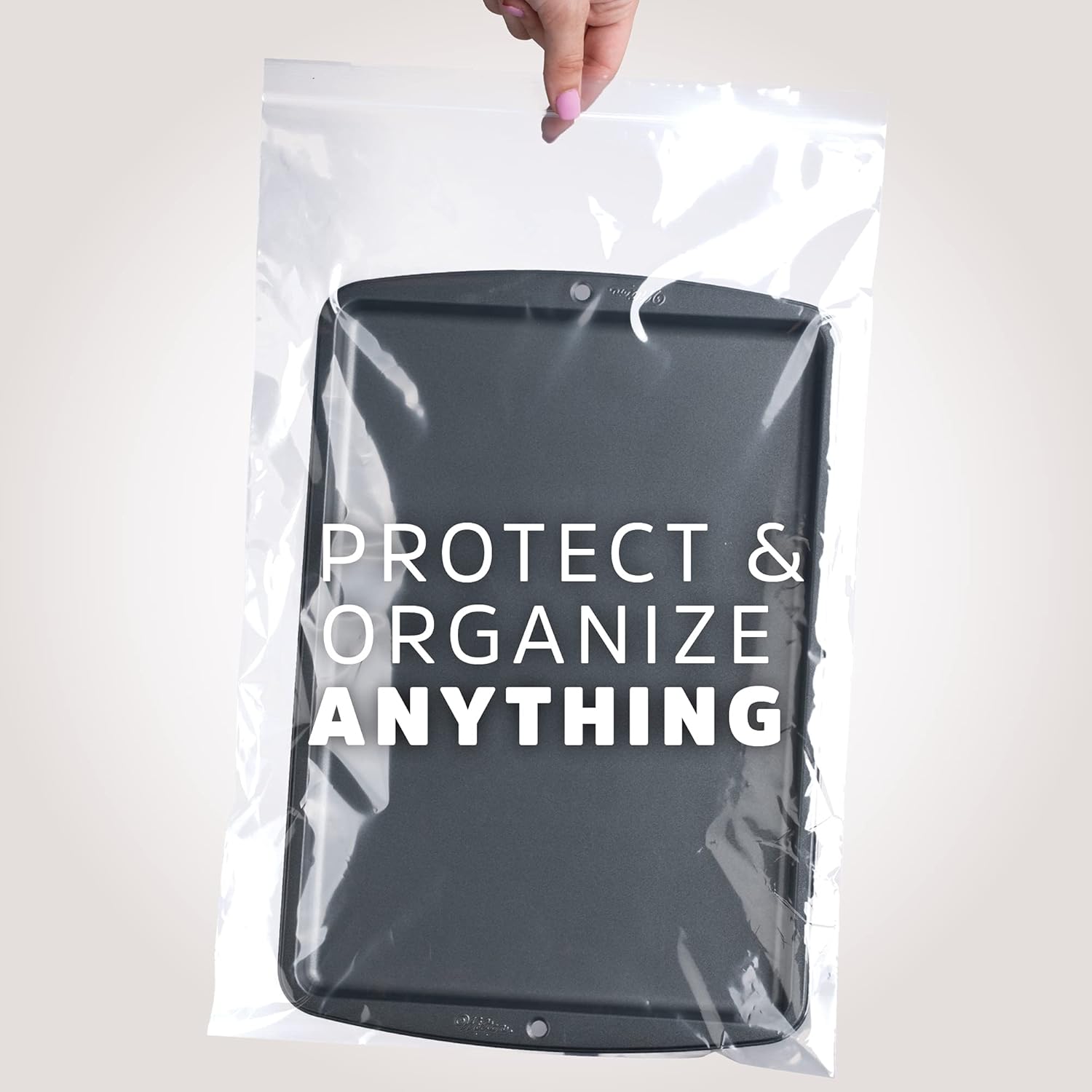 GPI Pack of 500, 14" X 20" Clear Plastic Reclosable Zip Bags - Bulk 2 Mil Thick Strong & Durable Poly Baggies with Resealable Zip Top Lock for Travel, Storage, Packaging & Shipping