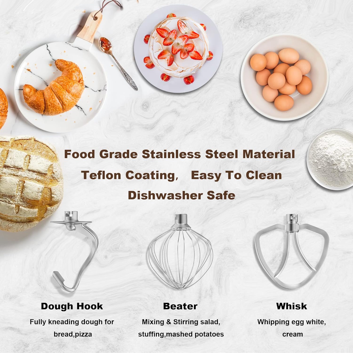 - 9-in-1 KITCHEN MACHINE - Vospeed kitchen stand mixer is a multi-functional food processor. It is equipped with a dough hook, whisk, beater, juice blender, meat grinder! Itβs a perfect kitchen helper for making cakes, bread, cookies, smoothies, juicer,salad, sausage, meat sauce etc. The splash guard helps to add ingredients without making a mess