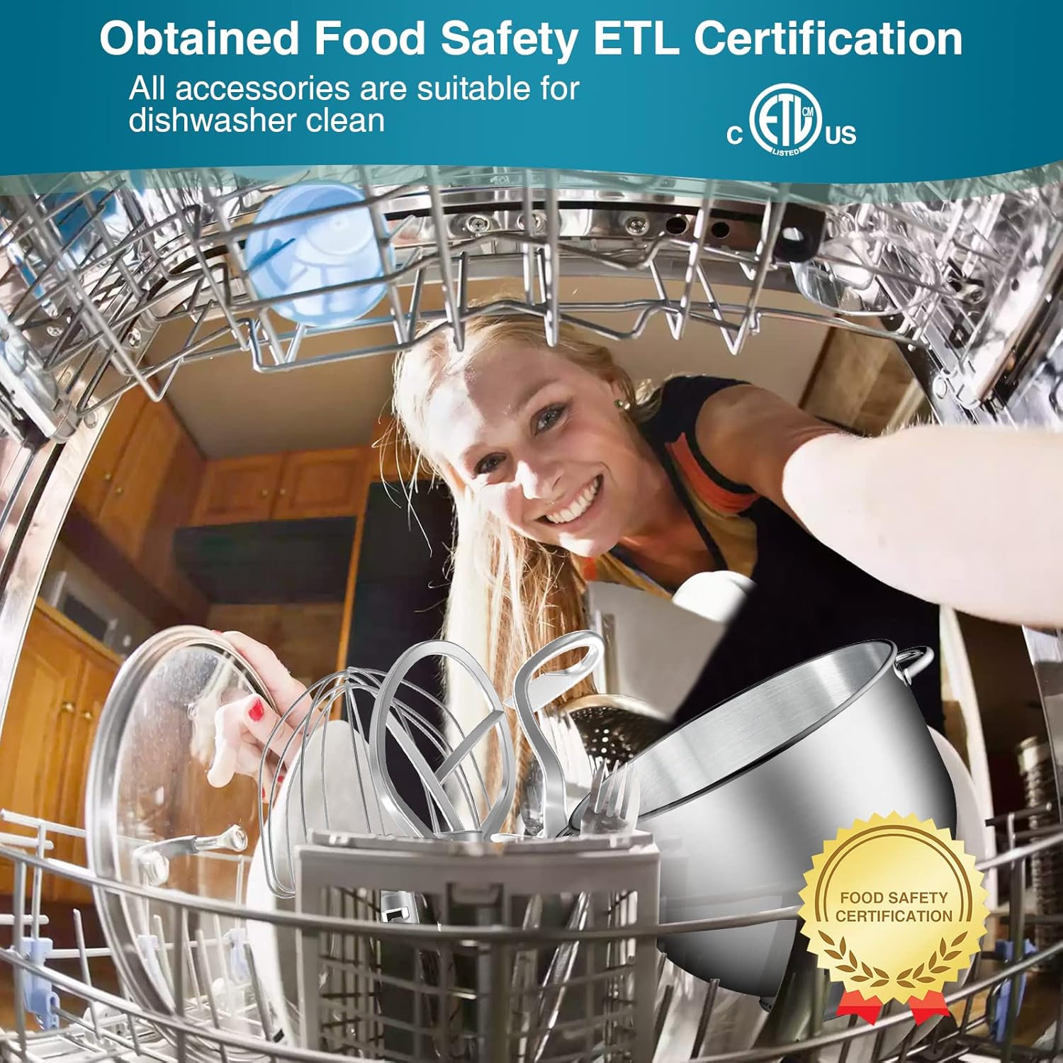 - Special Feature : Low noise, 360° planetary mixing, Vibration absorption design, No displacement during operation, Strong suction cups for more steady, Over-Heating and overload protection, Dishwasher safe, ETL certificate, Adjustable speed control, Tilt head, Mixers, Smart chip controlled, Fully automatic electric stand mixer, 660W powerful high performance pure copper motor, 6.5Qt stainless steel bowl with 2 handle, 6+p speeds rotary knob with pulse function, Full metal gears + ball bearing + belt structure, LED light as power indicator Low noise, 360° planetary mixing, Vibration absorption design, No displacement during operation, Strong suction cups for more steady, Over-Heating and overload protecti… See more