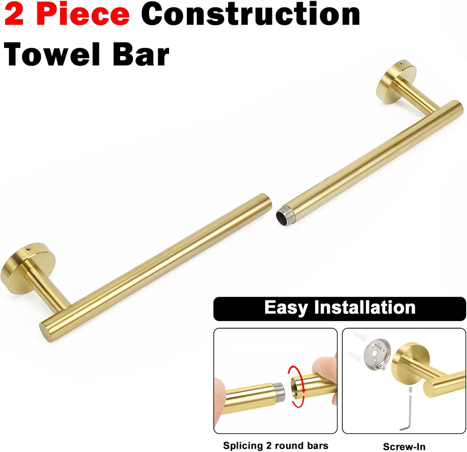 - EASY TO INSTALL: We provide all the screw accessories and installation instructions manual required for installation in the package; If you still encounter difficulties, you can contact us via email to get the installation video; Note: This towel bar is a spliced model, which is a 2-piece construction