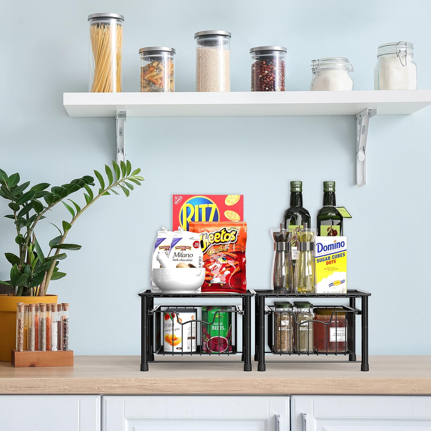 - Sliding basket for easy access in limit space and stackable design (Buy two sets and stack them together)