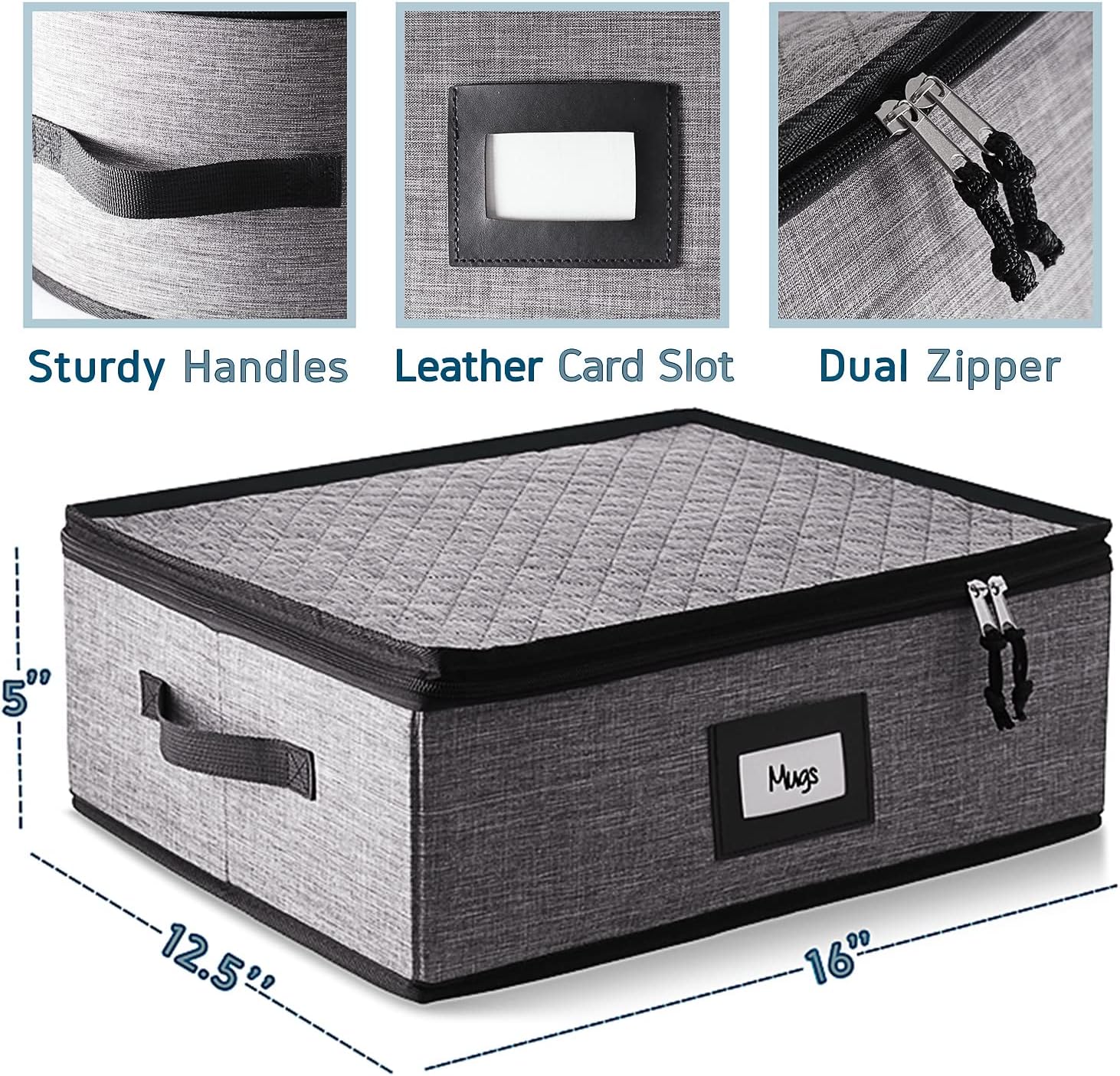 Coffee Mug Storage, Quilted and Stackable Coffee Cup Storage Organizer for Service of 12, Mug Storage Box with Dividers, Mug China Storage Containers Hard Shell for Moving and Seasonal Storage