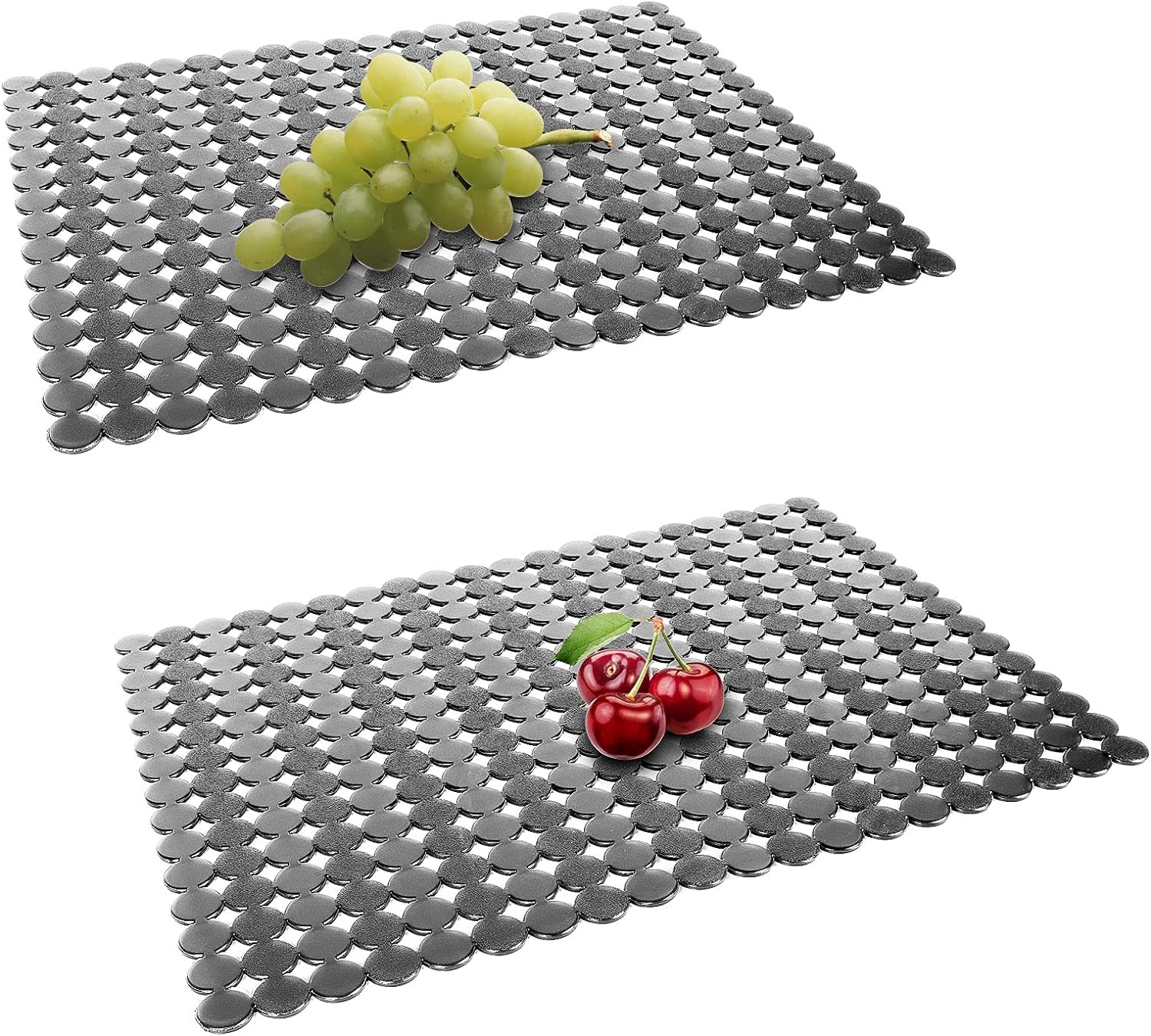 Qulable 2Pack Kitchen Sink Mat for Stainless Steel/Ceramic Sinks, PVC Eco-friendly Protectors for Bottom of Kitchen Sink, Adjustable, Fast Draining, Dots Design, 11.8x15.7 (Black Translucent)