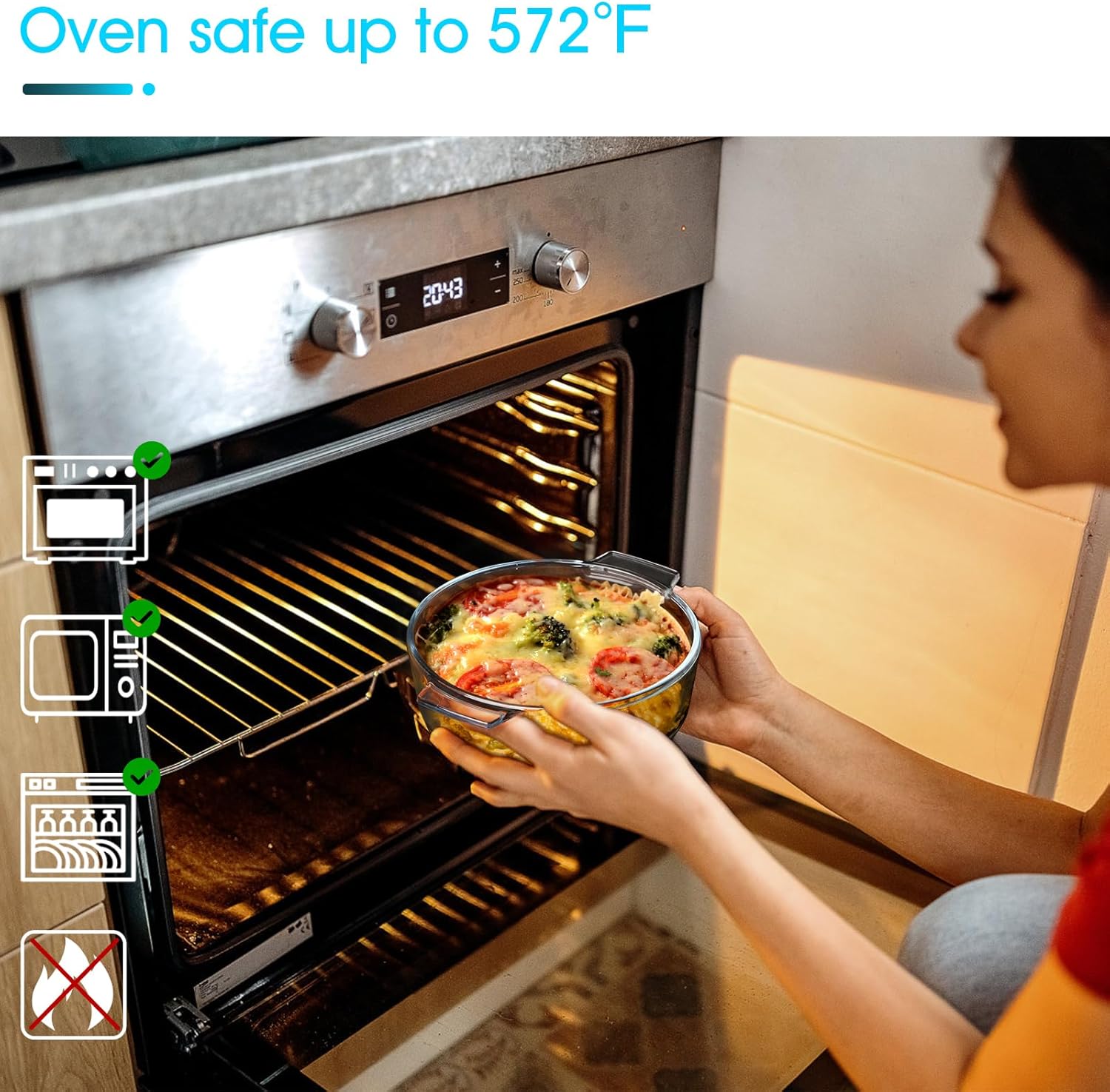 - Clear Covered Casserole Dish: Clear bowl lets you know how everything is cooking without having to poke into it or bother its presentation. Wide & shallow design allows food to cook or cool more quickly and evenly