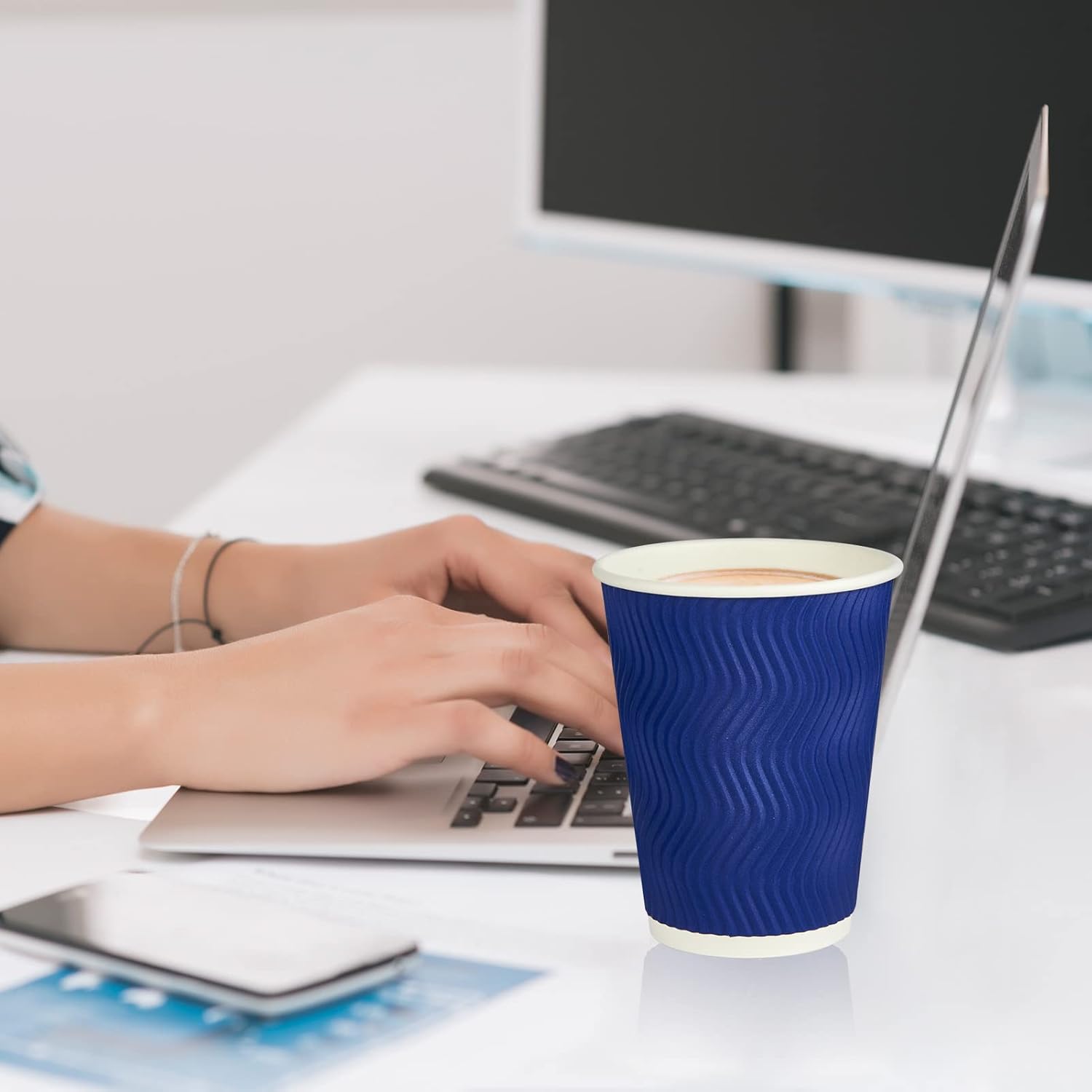 - Unique Modern Design: Disposable coffee cups 12 oz elegant and minimalistic S shape pattern elevate the look of your home brewed coffee to go! These ensure us a secure nonslip grip and a better feel in the hand