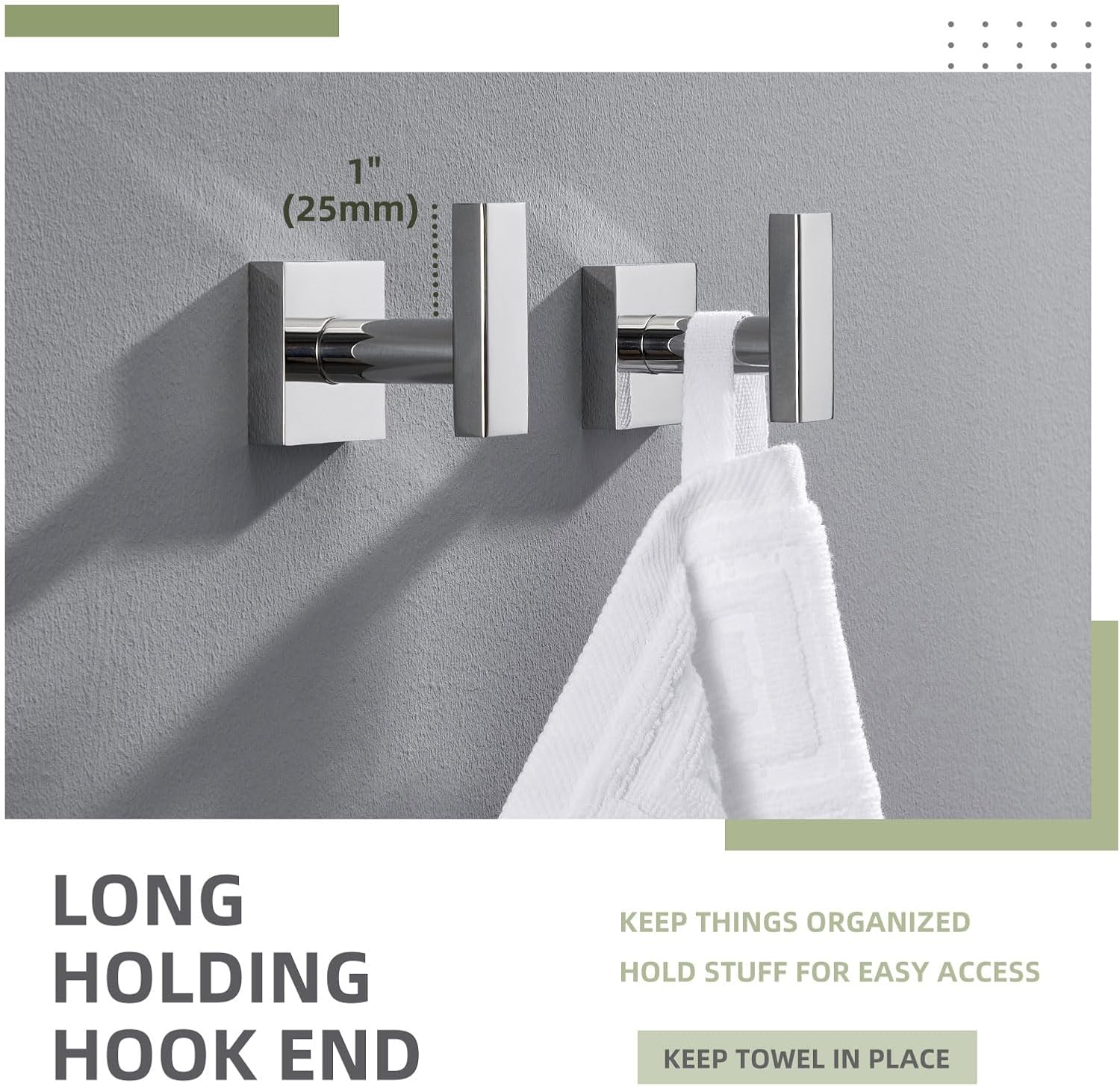 Angle Simple Bath Towel Hook 2 Pack, Stainless Steel Square Robe Coat Holder for Wall, Bathroom Kitchen Garage Wall Hook for Hanging Tools, Polished Chrome