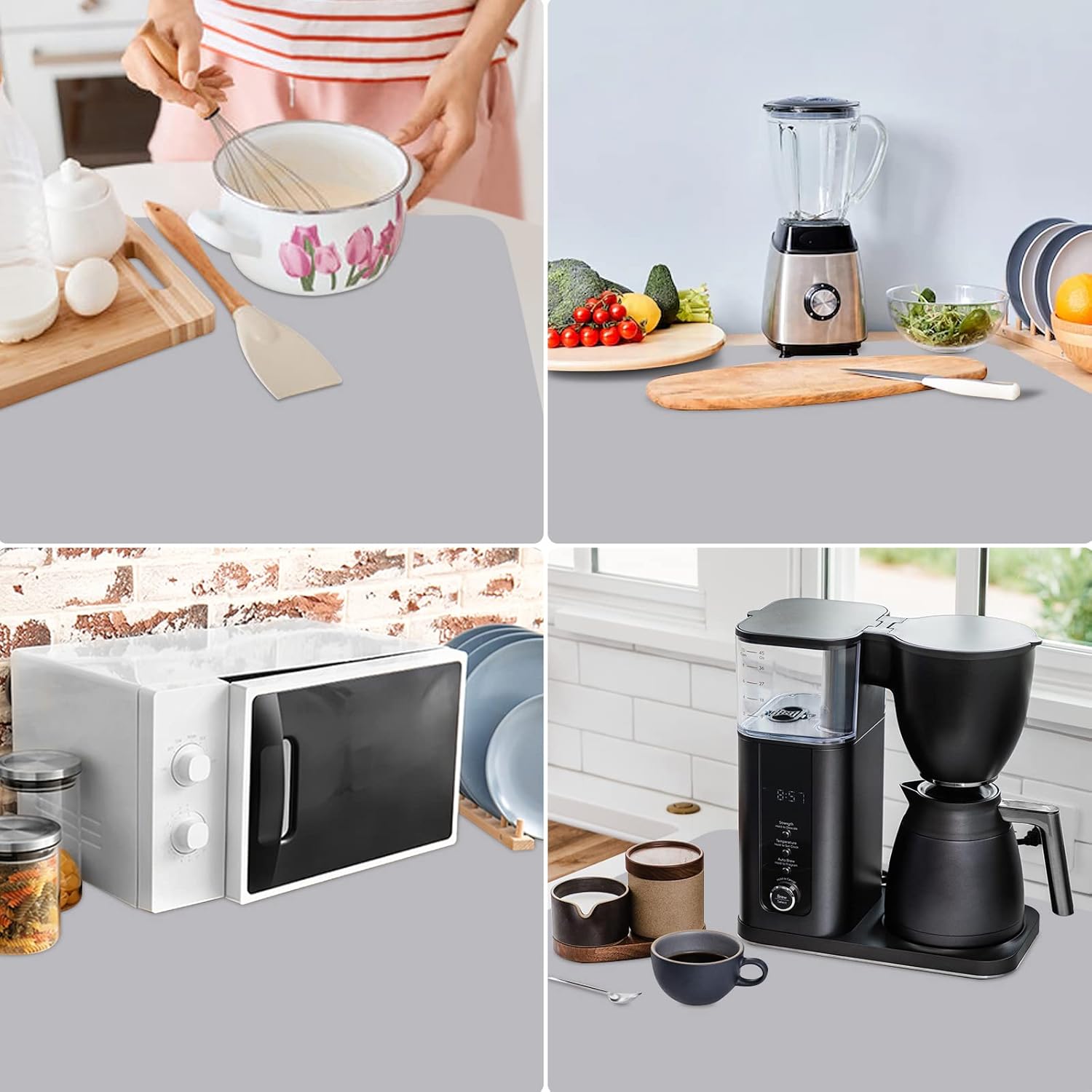- Oversize : Sized at 32 x 24 x 0.05 inches (L x W x T), larger and thicker than regular size, provides a larger area to protect your counter top. It can be placed under the microwave, pot, air fryer, induction stove, toaster oven, coffee maker, cutting board, etc.