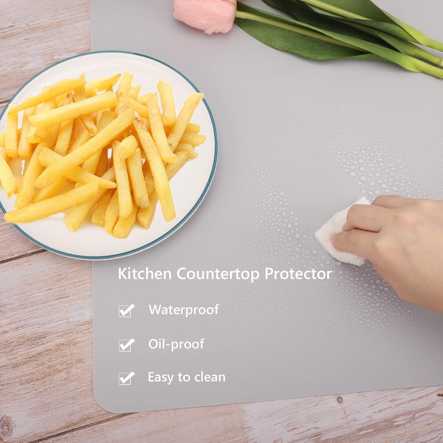 - Countertop Protector : The multipurpose silicone mat can be used as placemats, counter table protector, dish mats, pizza mat, dough mat, cookies/cake/fondant sheets, tableware, trivet, drains, heat insulated pads, 3D printer mat to protect the kitchen countertops and other surfaces against spills, scratches, grease, heat, etc.