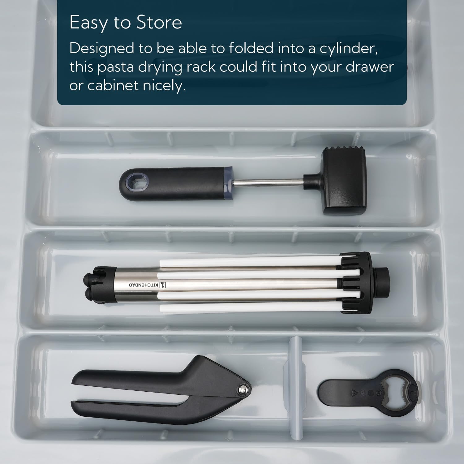 - Compact for Easy Storage: This pasta dryer rack is collapsible for easy storage. It saves space and fits nicely in the drawer or cabinet