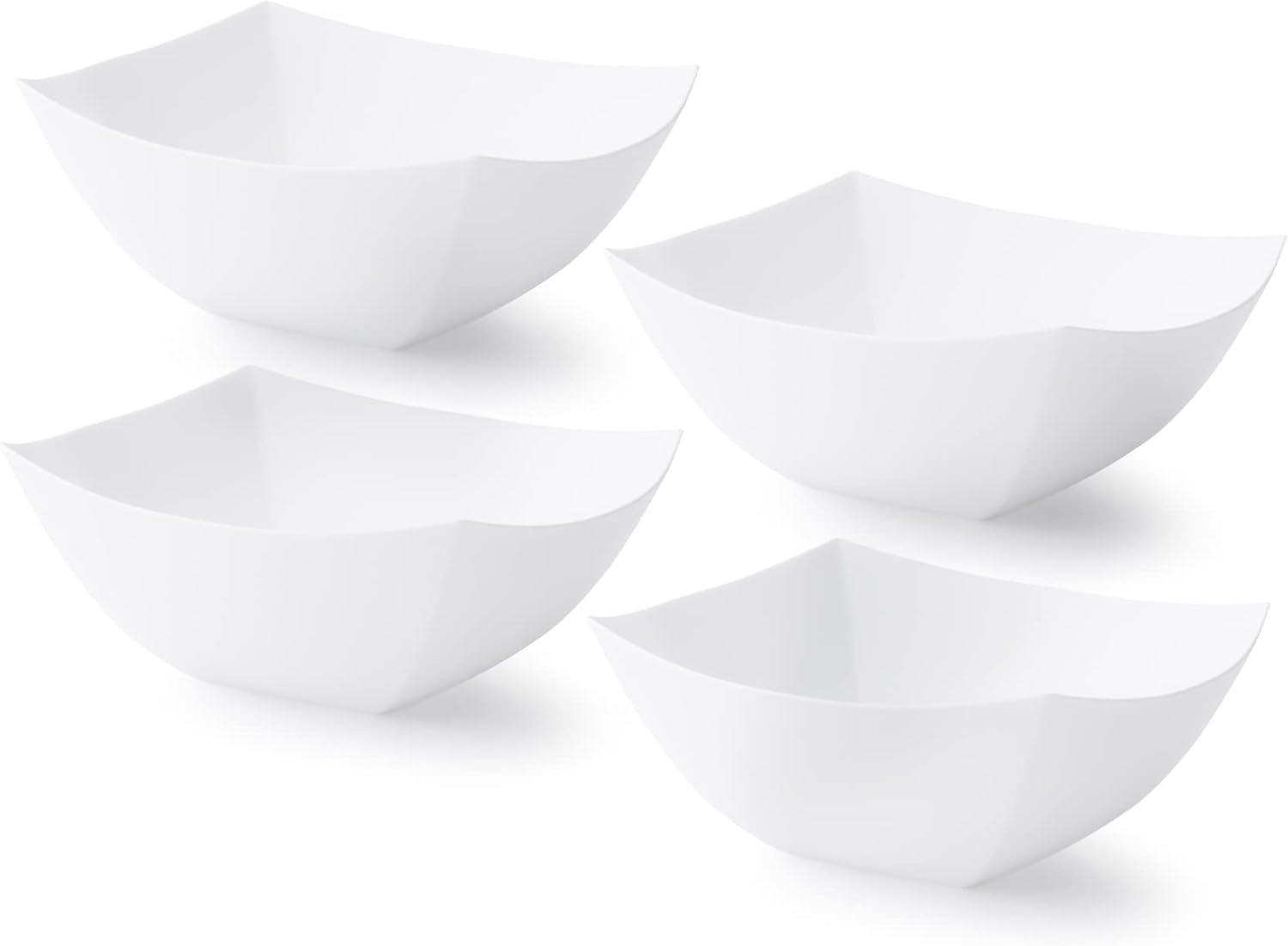 Posh Setting - White Plastic Serving Bowls for Party (8oz - 4 Pack) Square, Disposable, Salad & Fruit Bowls for Party Table, Candy Containers for Candy Buffet