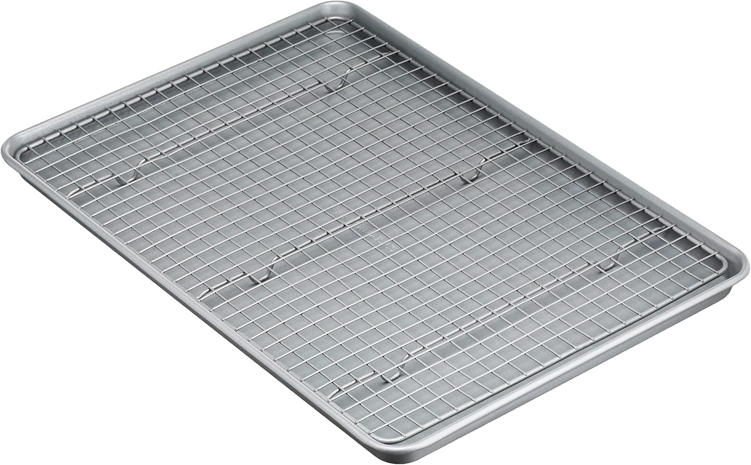 - Baking sheet and wire rack set for baking, roasting, grilling, cooking, cooling, and more