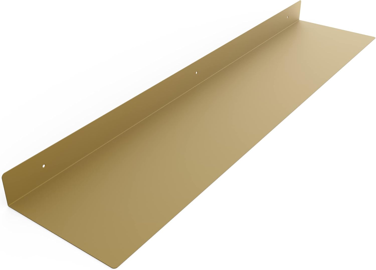 - DIMENSIONS & DETAILS: Measuring 36-inches long x 8-inches in depth, our steel floating shelf is made from 14 gauge raw steel and professionally powder coated gold. The weight of the shelf is 8 LBS. It's perfect for displaying books, plants, bottles, picture ledges, and retail displays