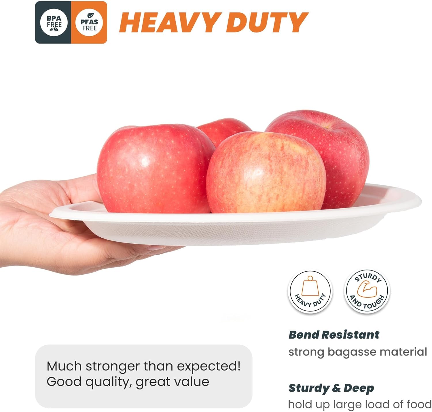 - Made of Bagasse: These biodegradable plates are made from natural bagasse, and do not contain any plastic or harmful chemicals. Choosing them is a conscious choice for forest resources and ecosystem. Purchasing these plates means you're supporting sustainable development.