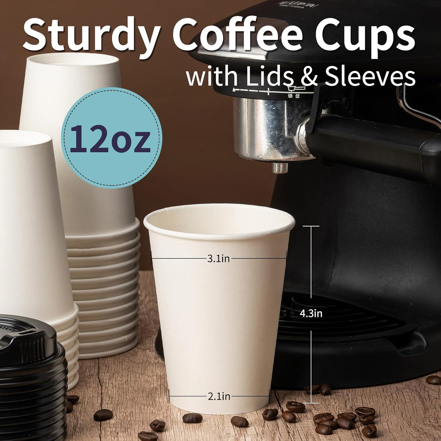 - Paper Cups 12 oz: With 50 lids and 50 kraft sleeves, our 50-pack 12 oz coffee cups are ideal for on-the-go drink options, perfect for serving coffee, hot cocoa, and hot beverages. The sleeve is perfect for writing and painting as you like
