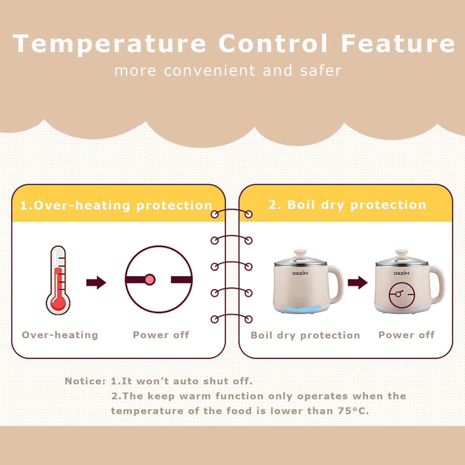 - We take care of your safety - Equipped with keep warm function (this function will work repeatedly to stabilize the temperature between 75 °C to 80 °C, which means only if the temperature is lower than 75°C, it will operate, and when the temperature is higher than 80°C again, the function will turn off itself), over-heating protection and boil dry protection. Including 100% stainless steel interior and stain-resistant glass cover, with double wall construction, more convenient and safer.