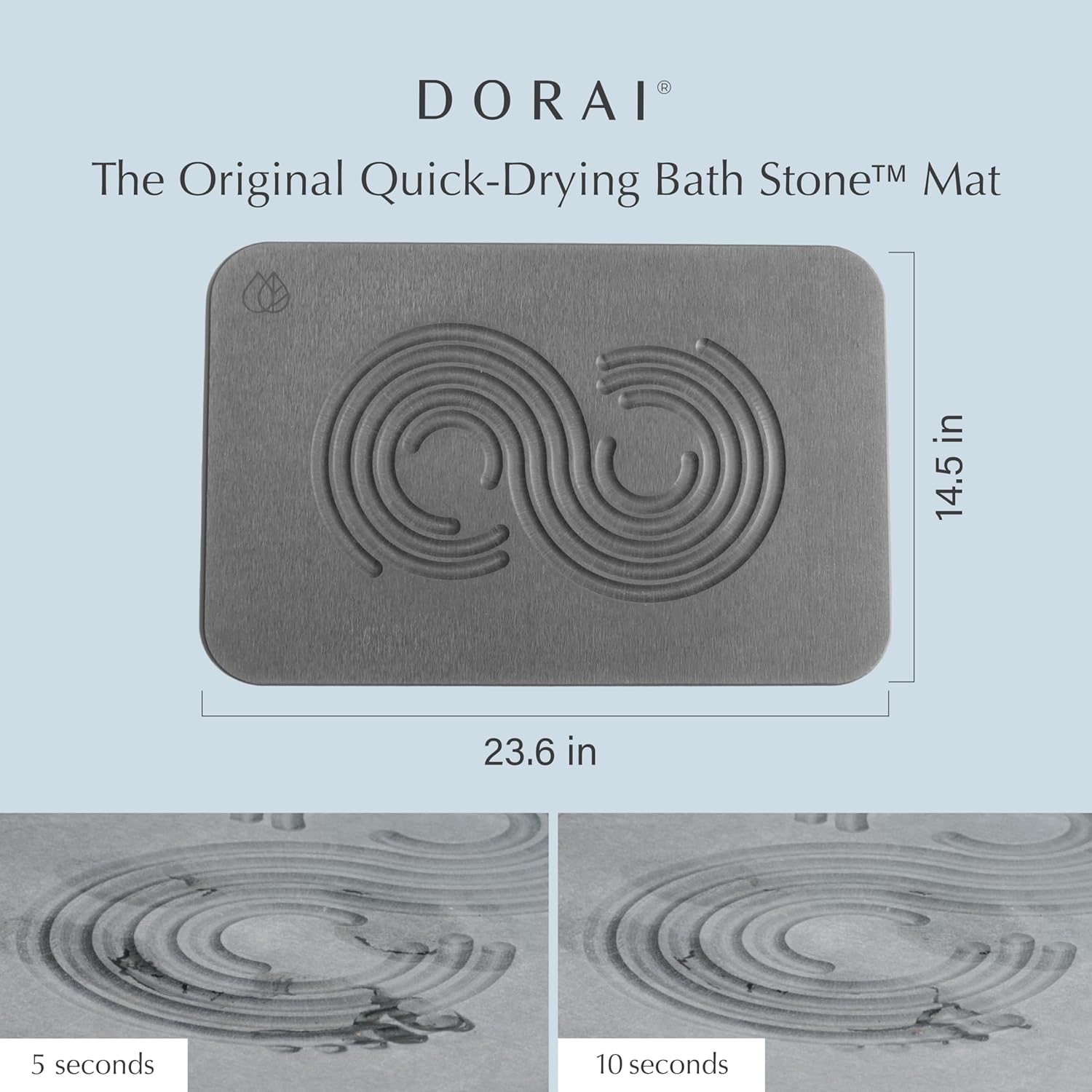 - THE ORIGINAL BATH STONE MAT - Say goodbye to old, soggy bath mats and transform your bathroom with the Dorai Bath Stone Mat. Crafted from diatomaceous earth and recycled paper, our bath mat dries instantly, eliminating moisture buildup and odors.