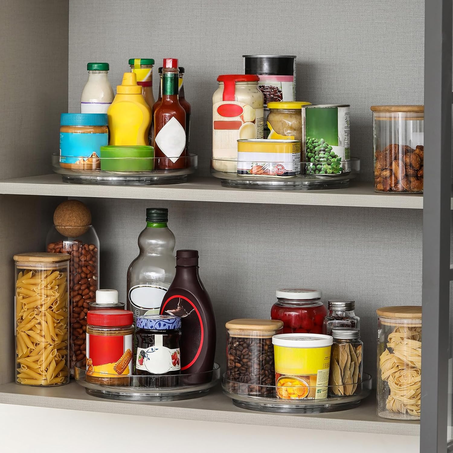 - [ Please Note ] - The clear lazy susans are large enough for coke of 8 cans(refer to the 2rd image). Please read the lazy susan dimensions and measure your tabletop or closet space before ordering in case it doesn't fit.