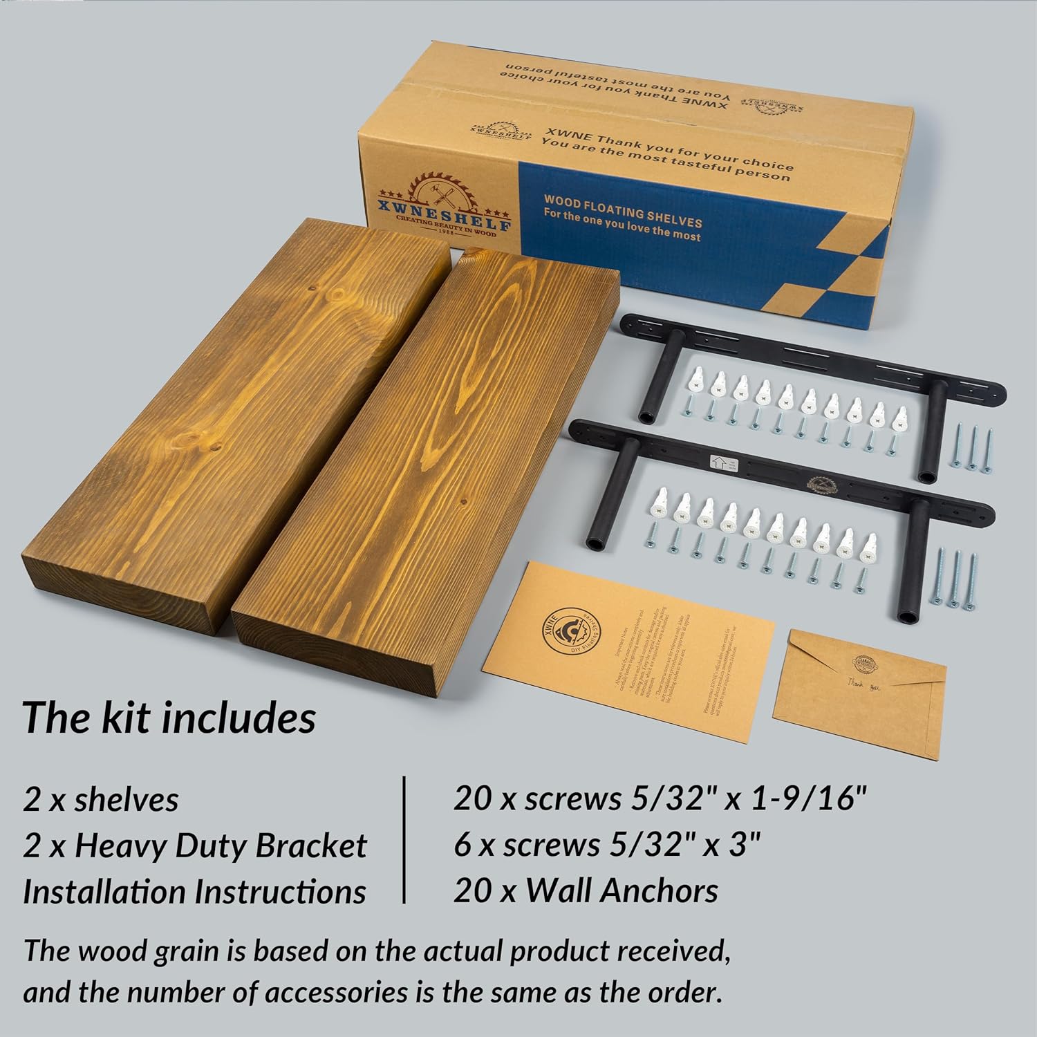 - Solid Wood Floating Shelves: The wood Floating Shelf is made from 100% solid pine, selected for its beautiful wood grain texture and knotted into points, with a sanded, hand-stained finish that gives the space a rustic, natural, warm feel. Note: All steps are done by hand and each ledge is slightly different, but equally stunning!