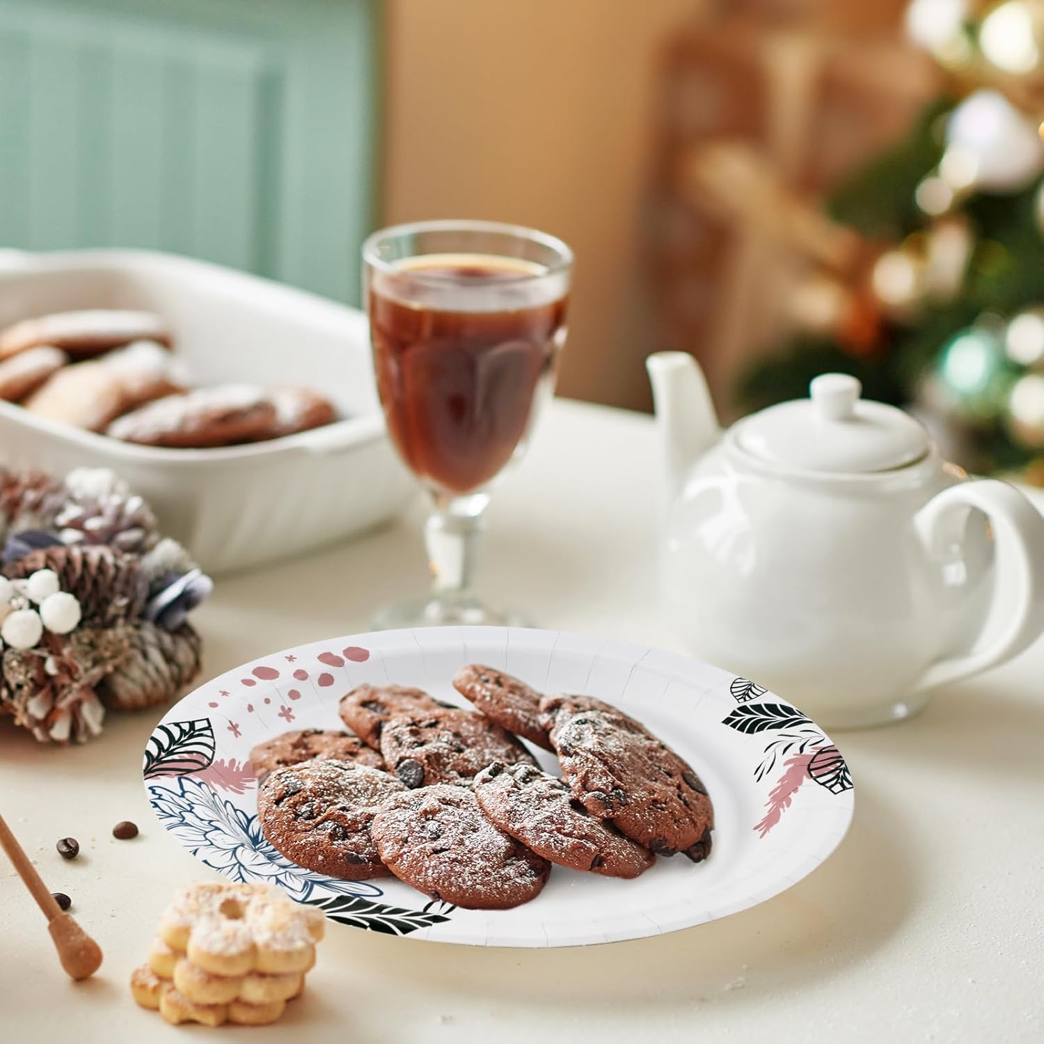 JOLLY CHEF 280 Count Paper Plates 8 inch Soak Proof, Cut Proof, Heavy Duty Flower Printed Disposable Paper Plates for Everyday Use, Thanksgiving, Christmas Day