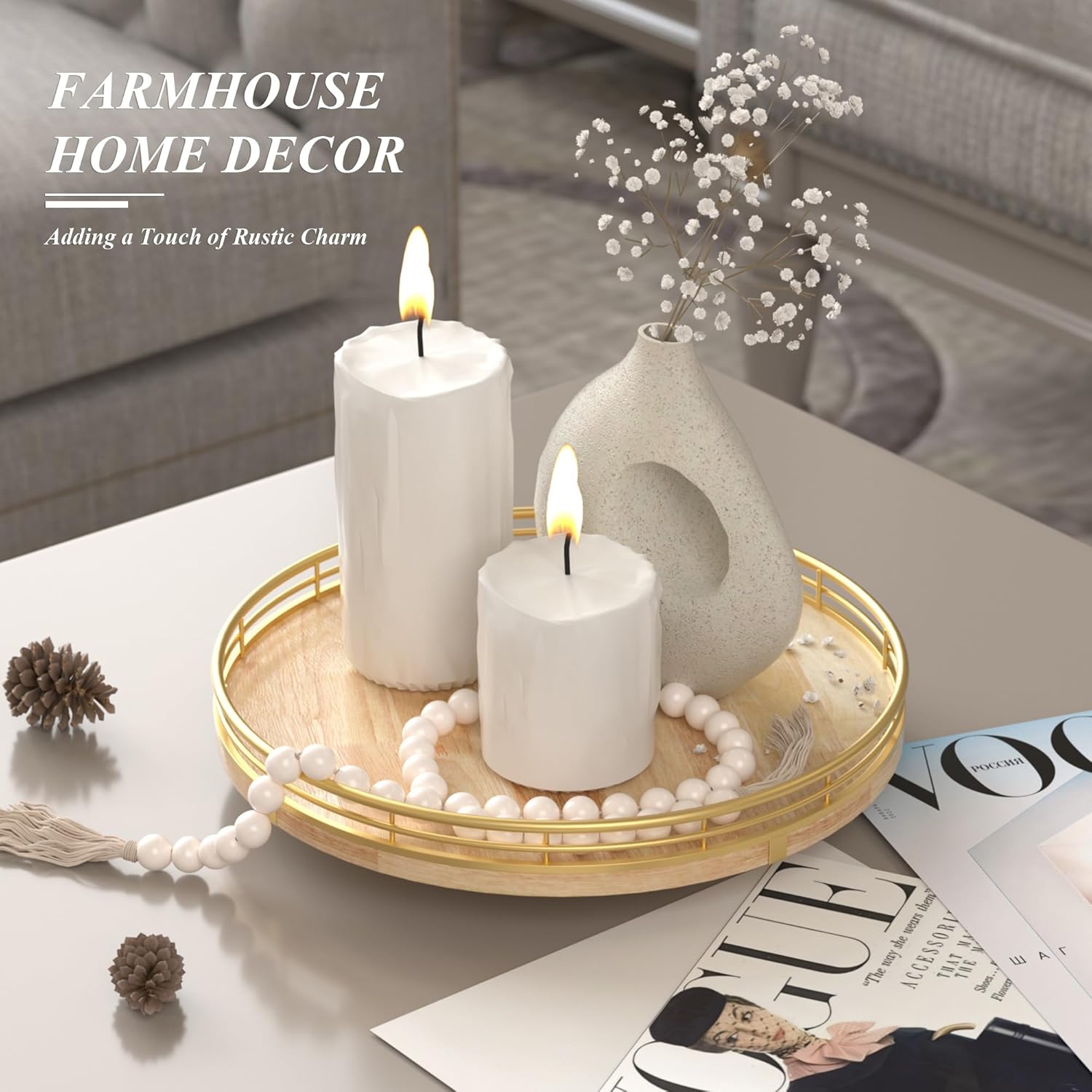 Farmhouse Oak 10" Lazy Susan Turntable Organizer for Cabinet, Round Wooden Lazy Susan Organization and Storage for Dining Table, Pantry, Kitchen, Countertop, Cupboard,Home Decor