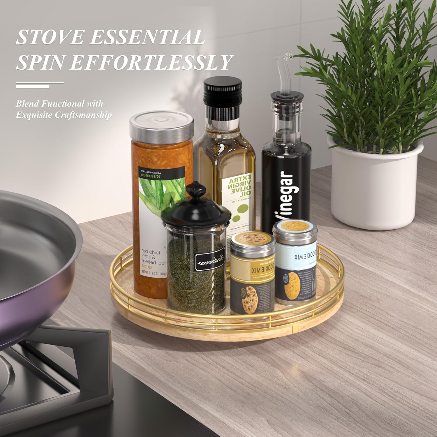 - πππΒ°ππππππππ :The base is made of solid wood, and the spinning mechanism is made of steel ball bearings, which are well-built and allow for 360Β°smooth spinning. This Lazy Susan is very attractive and very easy to use to keep your spices, condiments, and more organized and accessible.