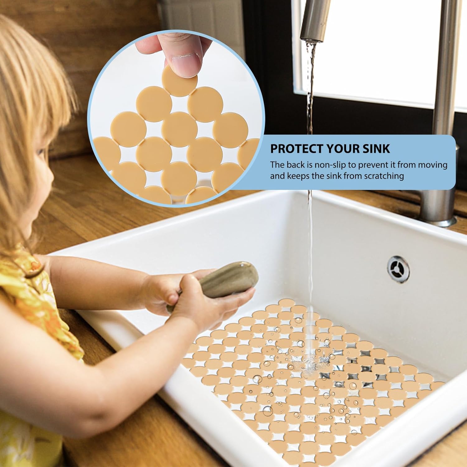 Qulable 2Pack Kitchen Sink Mat for Stainless Steel/Ceramic Sinks, PVC Eco-friendly Protectors for Bottom of Kitchen Sink, Adjustable, Fast Draining, Dots Design, 11.8x15.7 (Wheat)