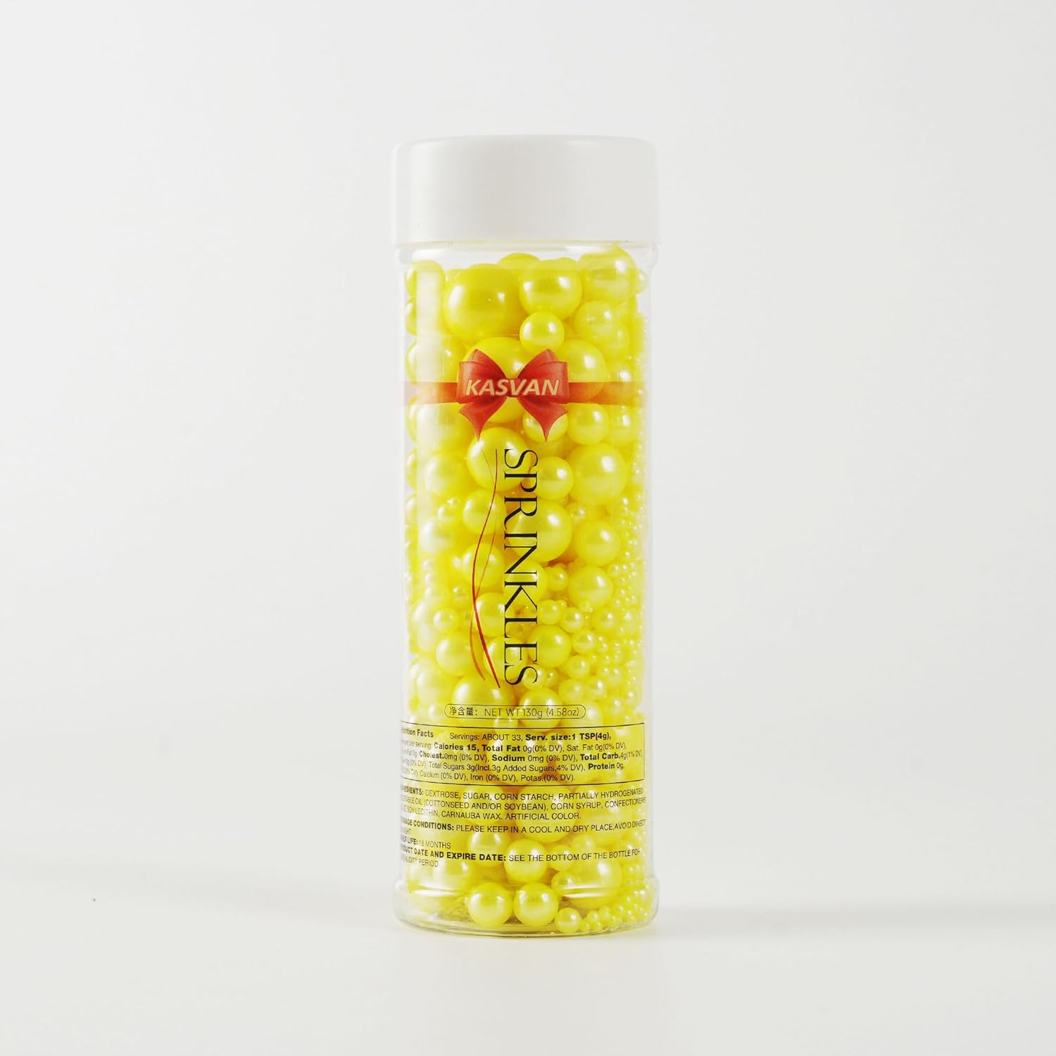 Kasvan Yellow Pearl Sugar Sprinkles - Edible Candy Pearls 130g/4.58 Oz, Mix Size, Baking Cake Decorations, Ice Cream Toppings and Cookie Decorating, Wedding Party Chirstmas Supplies