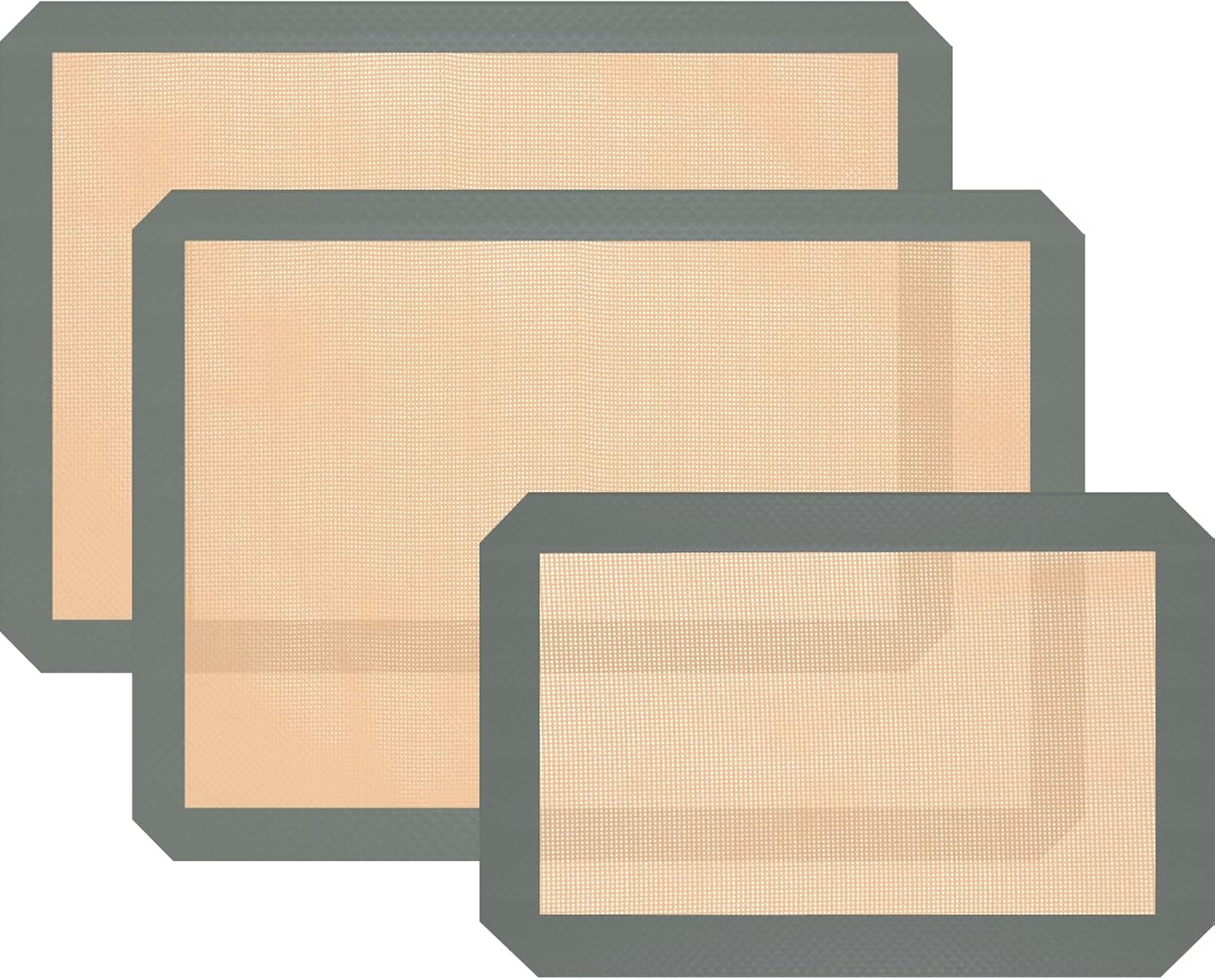 Silicone Baking Mat, 3 Pack Reusable Baking Mat, Non-Stick, Food Safe Silicone Mats for Baking, Oven Baking Sheet for Making Cookies, Macaroons, Bread