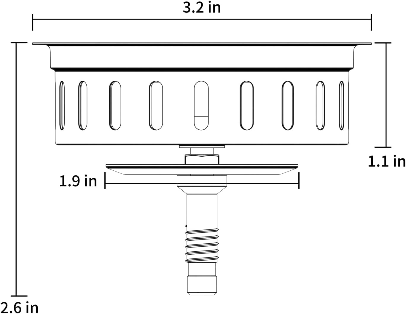 - Kitchen Sink Drain Stopper: Unscrew the threads at the bottom of the T-lock to use as a strainer. The 40 long holes in the strainer basket effectively trap food debris and prevent it from clogging the drain for fast, smooth draining