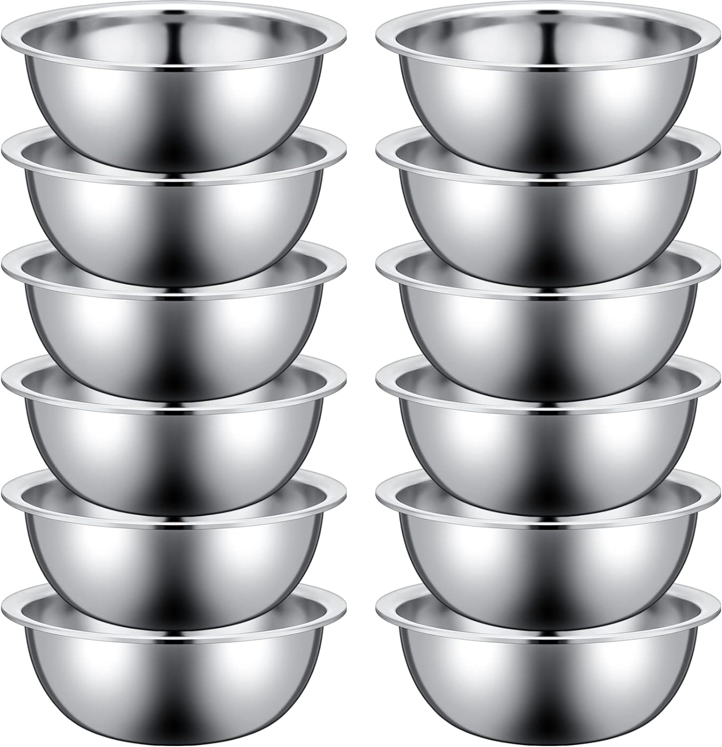 - Stainless Steel Mixing Bowl Set: what you will receive are 12 pieces of stainless steel bowls for mixing in silver color, metal food prep bowls are about 9.45 x 3.15 inches/ 24 x 8 cm which can be applied as both baking mixing bowls and serving bowls adequate quantity can well meet your daily use, replacement and sharing demands