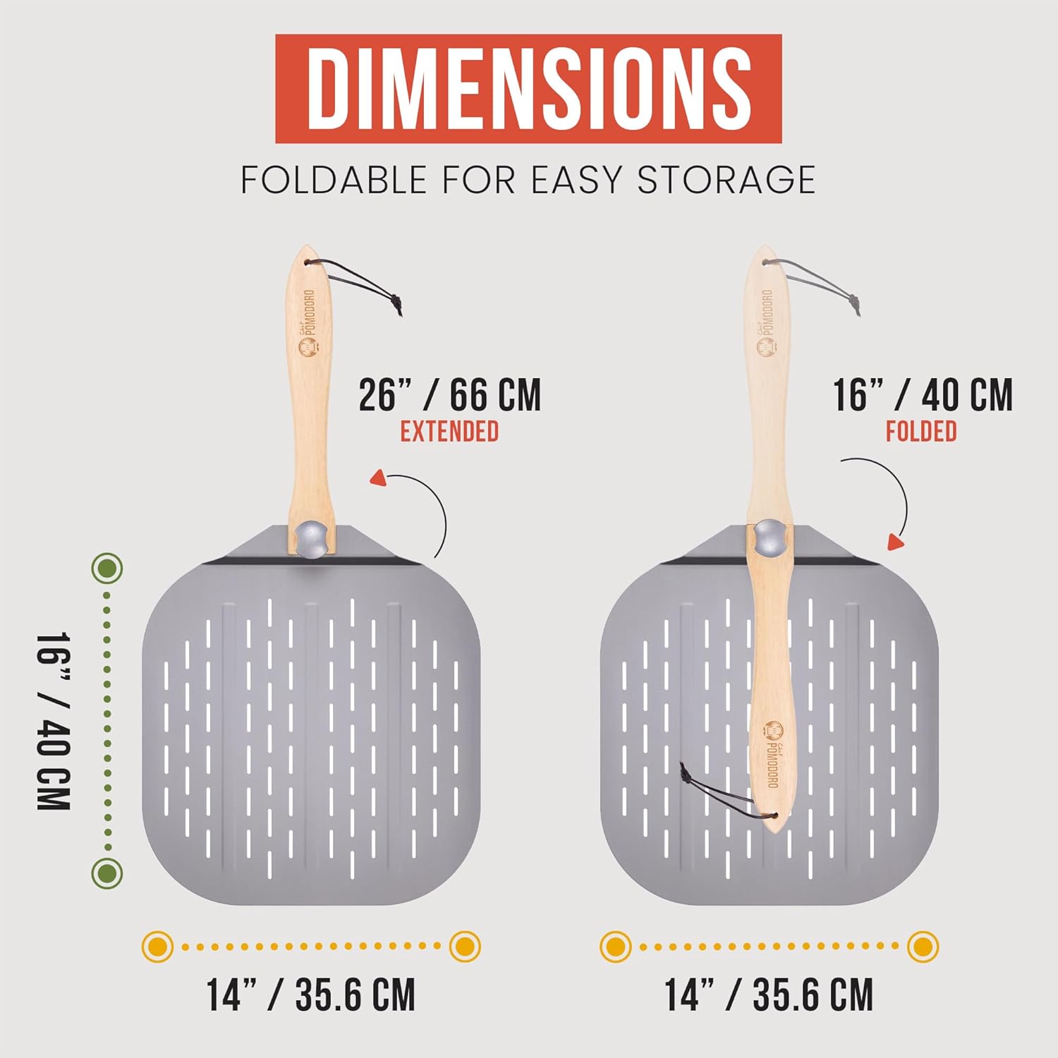Chef Pomodoro Aluminum Metal Pizza Peel with Foldable Wood Handle for Easy Storage, Pizza Spatula, Gourmet Luxury Pizza Paddle for Baking Homemade Pizza Bread (16 inch)