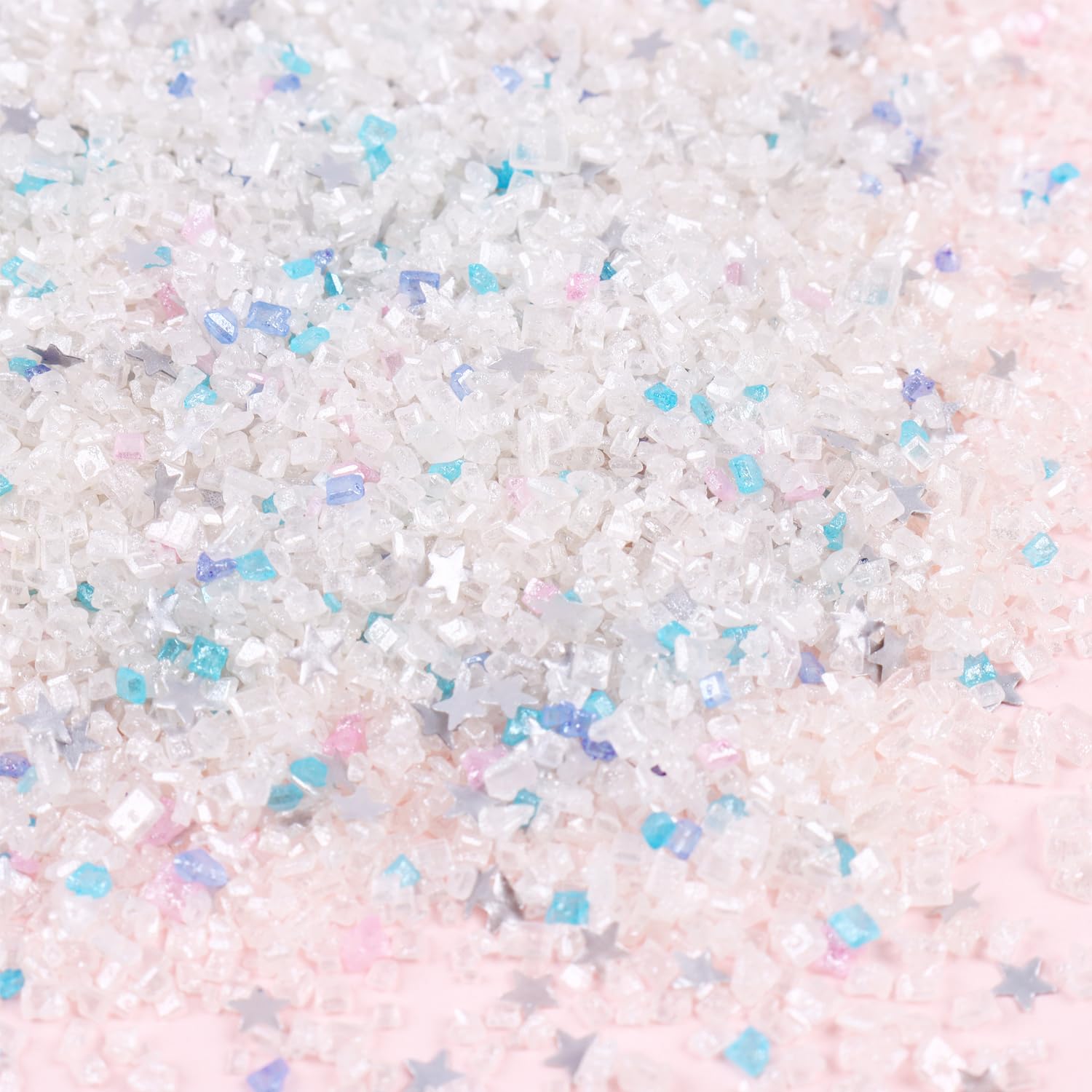 White Sanding Sugar Edible Silver Glitter Stars Mix, Edible Sugar Sprinkles for Cake Decorating, Sparkling Edible Sanding Sugar for Cupcake Toppers Cookie Decorations For Wedding Party Celebrations 3.5oz (mermaid)
