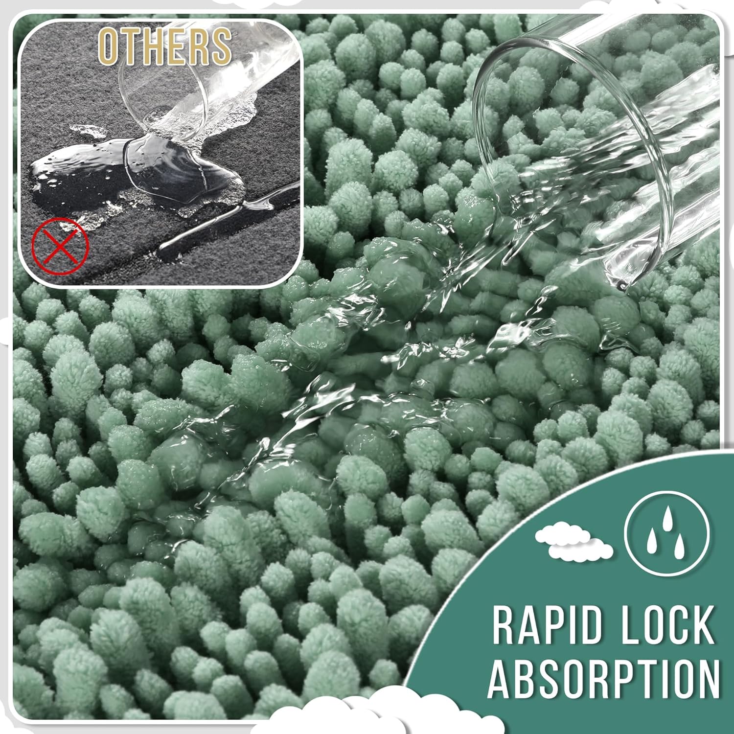 Yimobra Bathroom Rugs Non Slip Washable 32x20 Inch - Ultra Soft Absorbent Chenille Bath Mat, Quick Dry Shaggy Floor Carpet for Tub Shower, Green Home Decor Accessories