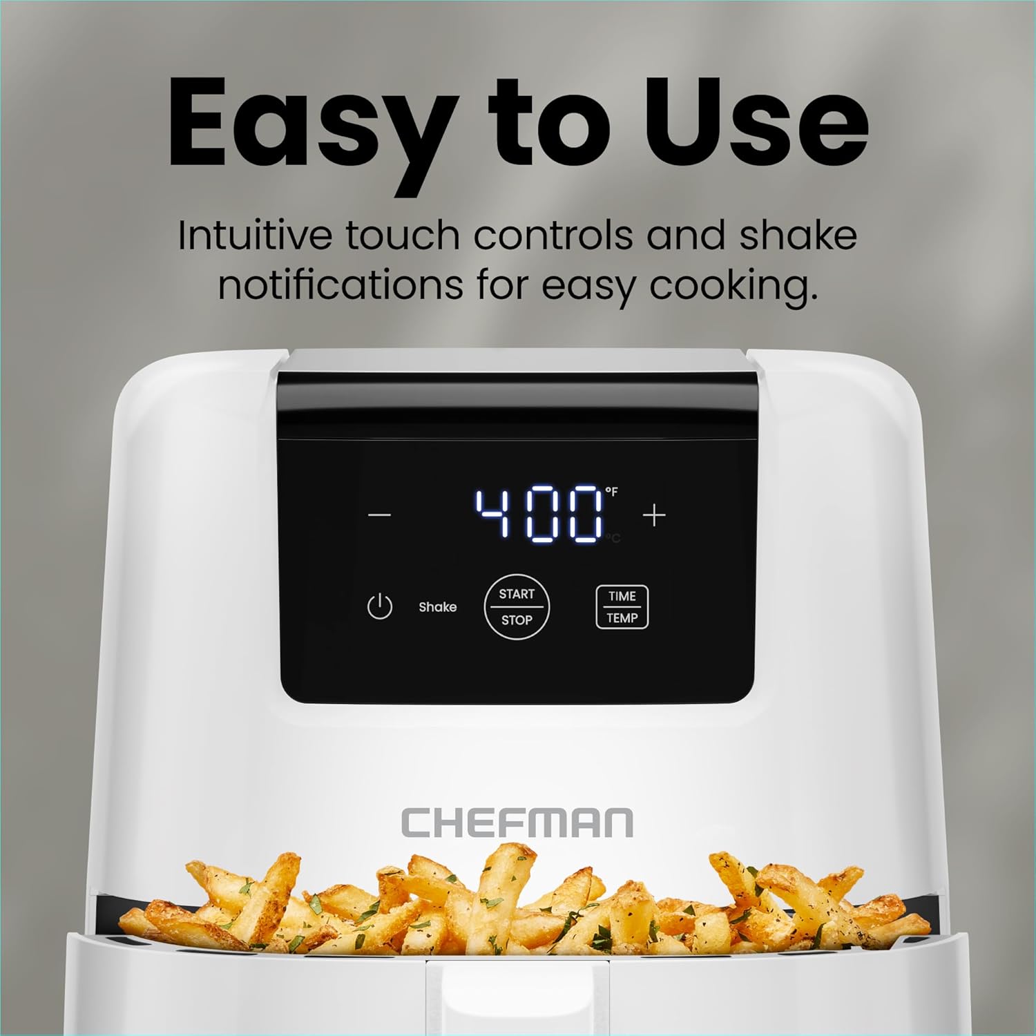 - SHAKE NOTIFICATIONS: Halfway through cooking, the TurboFry Air Fryer automatically notifies you with an audible alarm that it’s time to shake your food for the crispiest results possible.